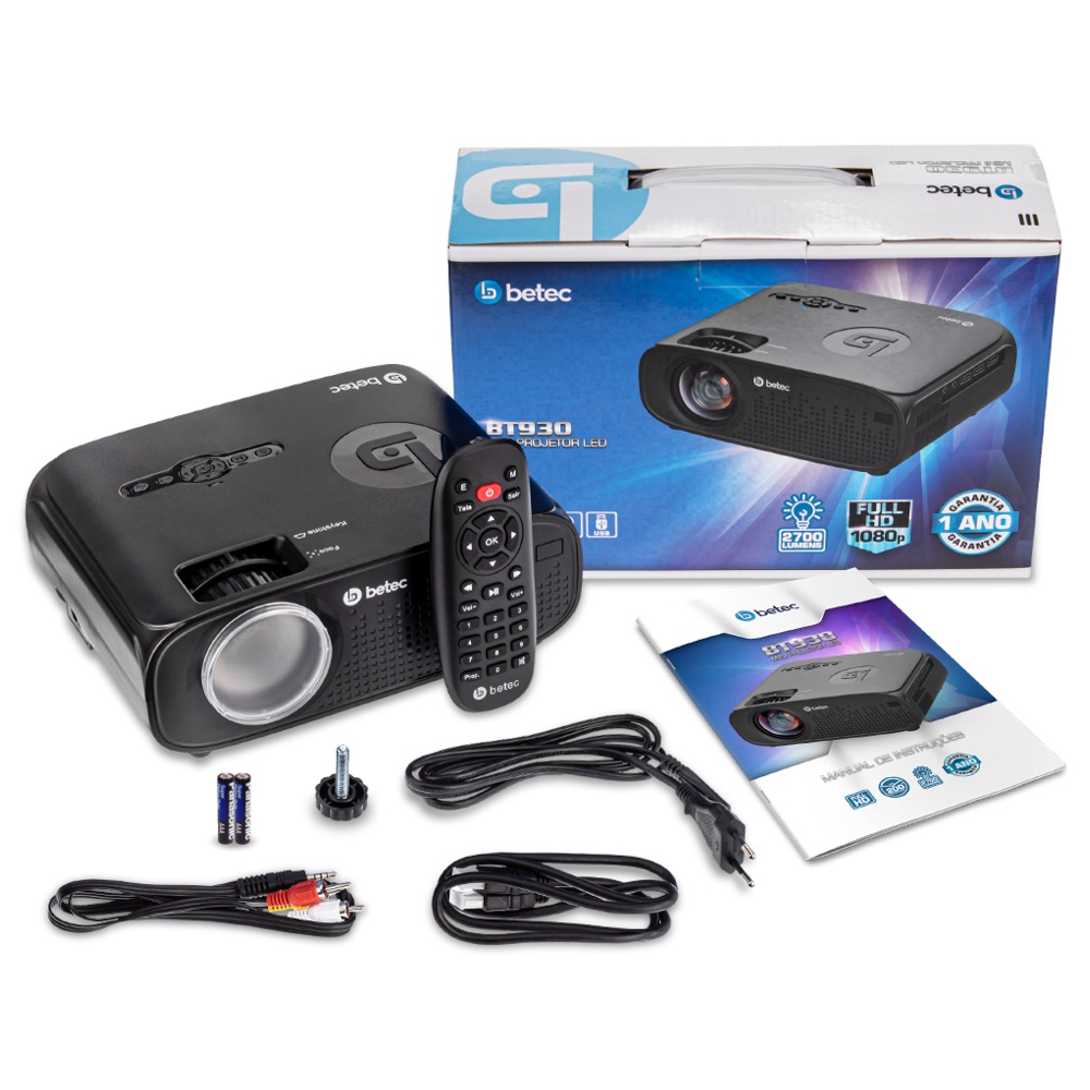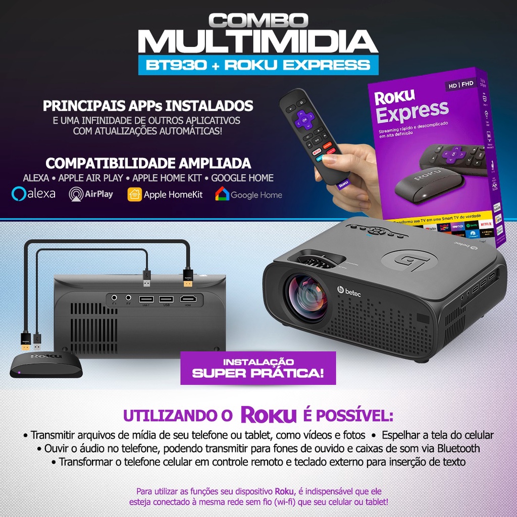 Kit Mini Projetor Betec BT930 Full HD 2700 Lumens + Roku Stick Smart Wifi