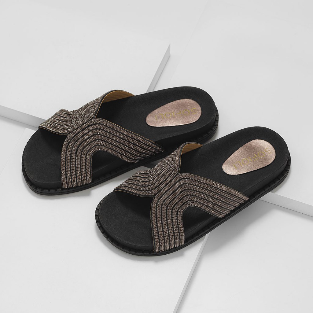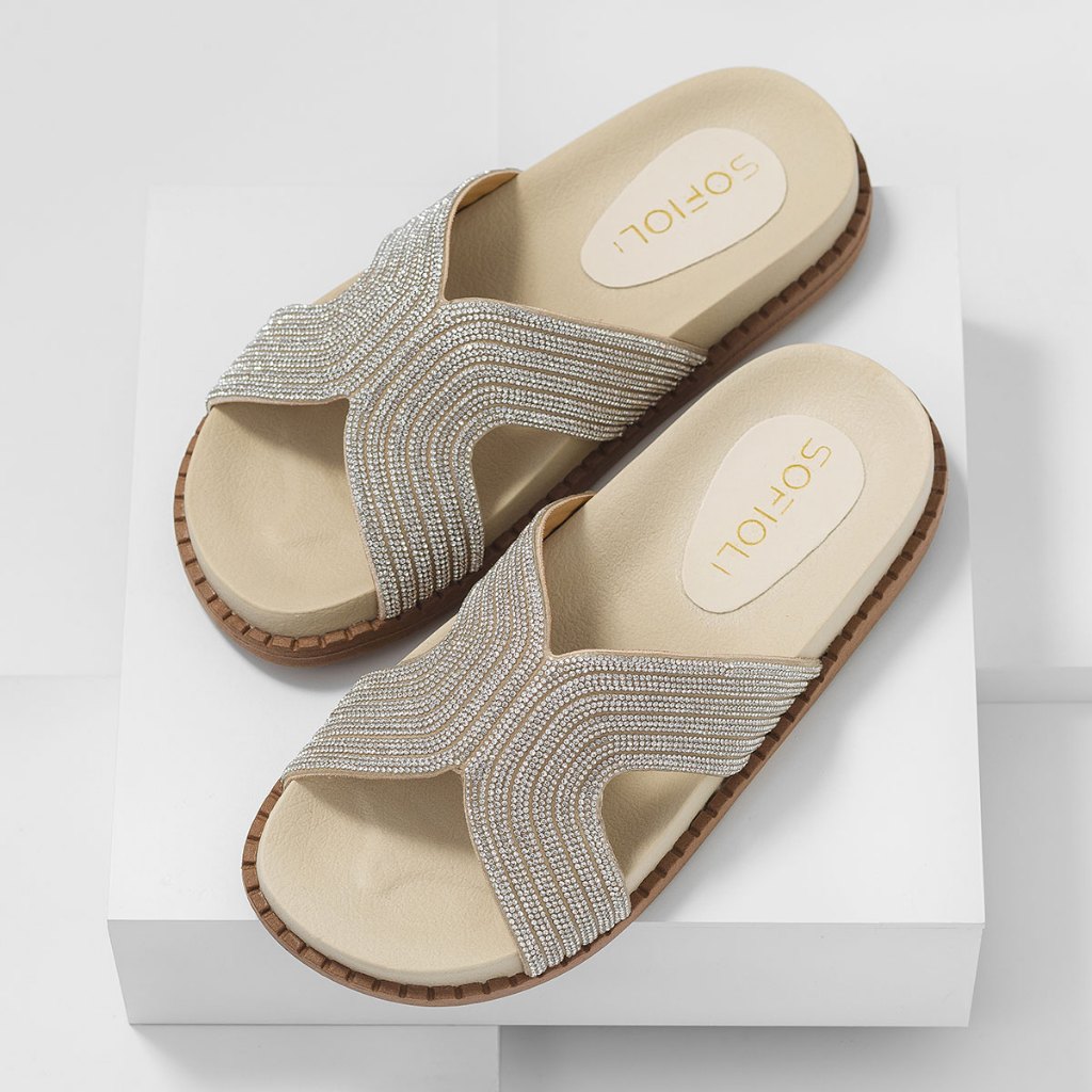Birken Feminina Papete Brilho Strass Sandália Luxo Delicada Chinelo Verão Original Sofiolí