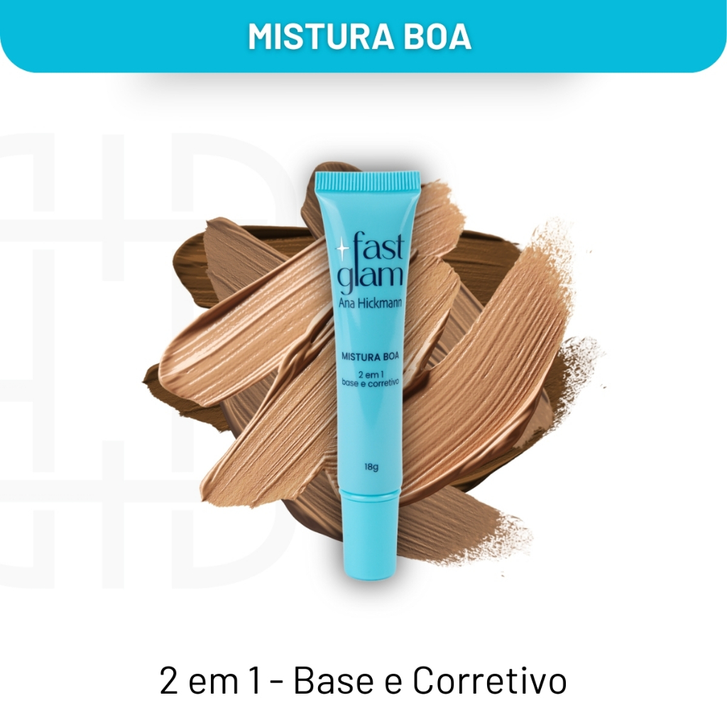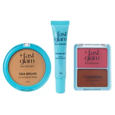 Kit Pó Compacto Tira Brilho + Base 2 em 1 + Blush Duo Rosada Coradinha -Ana Hickmann Fast Glam