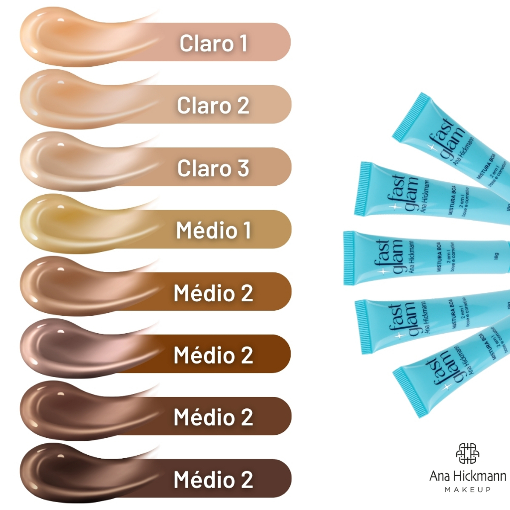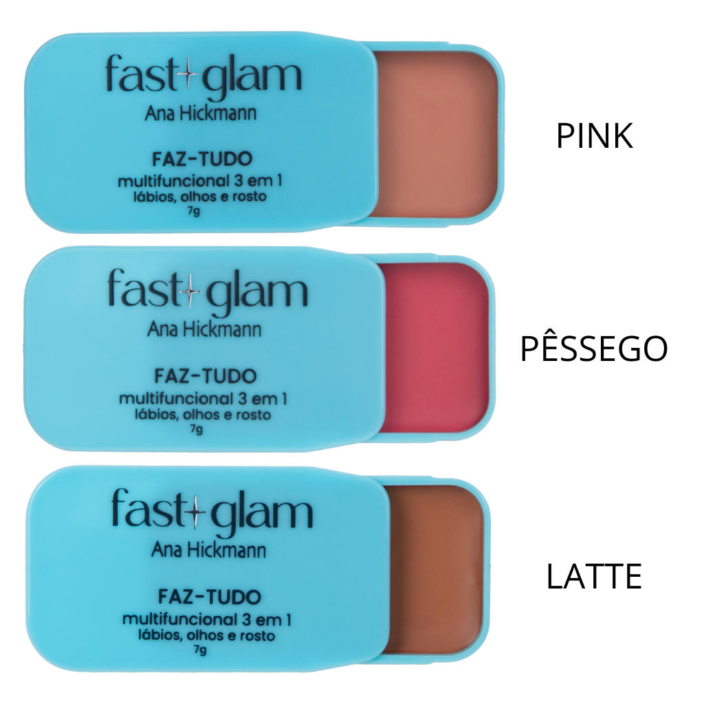 Kit Completo Fast Glam ( Blush + Pó + Base + Faz Tudo + Hidratante Labial + Sombra)