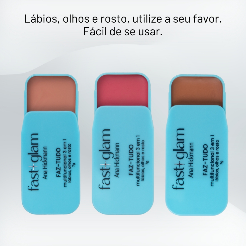 Faz Tudo Multifuncional 3 em 1 Blush Contorno Sombra Batom Fast Glam Ana Hickmann