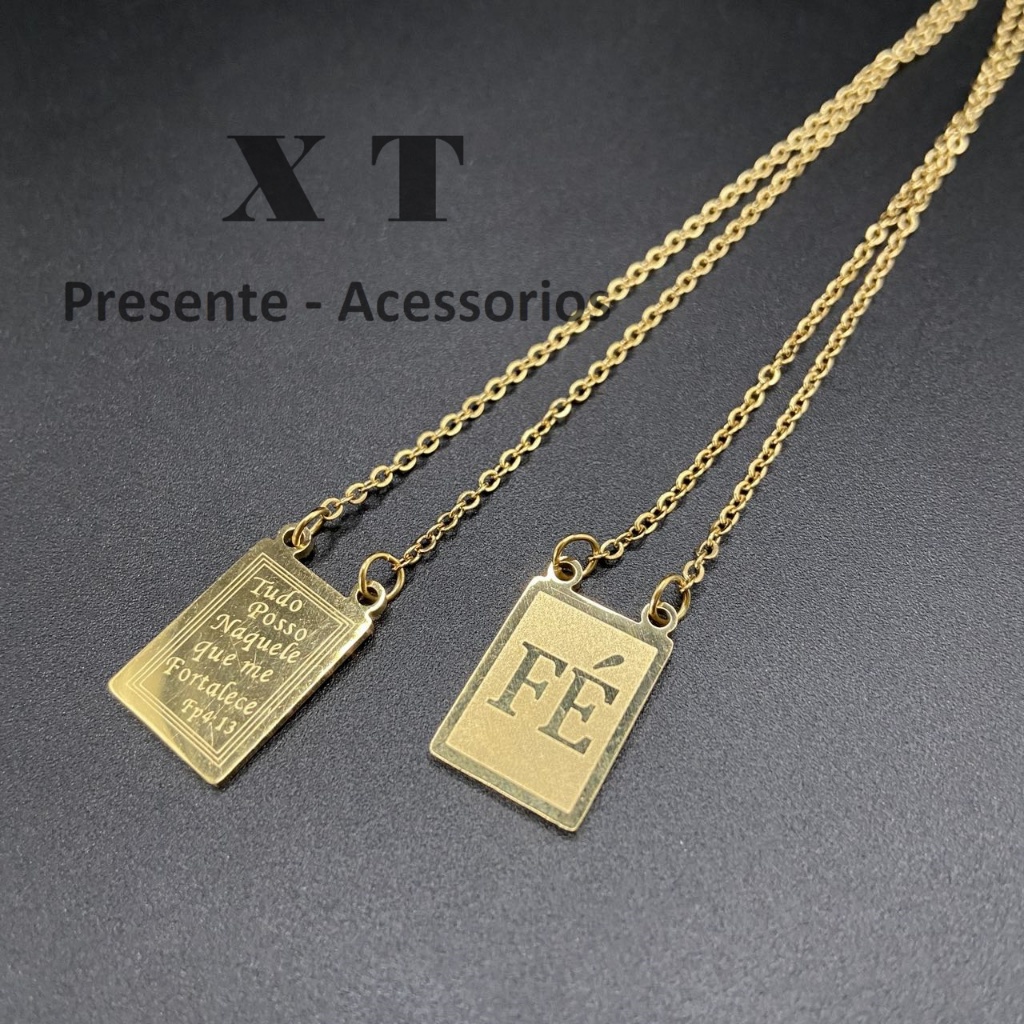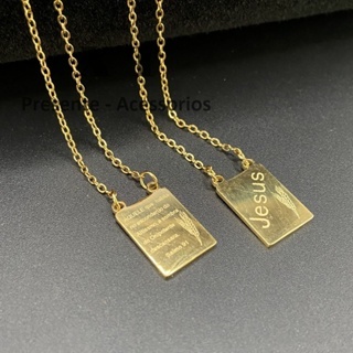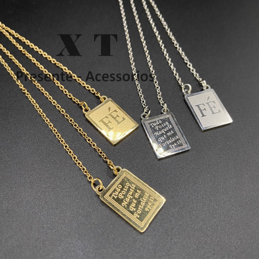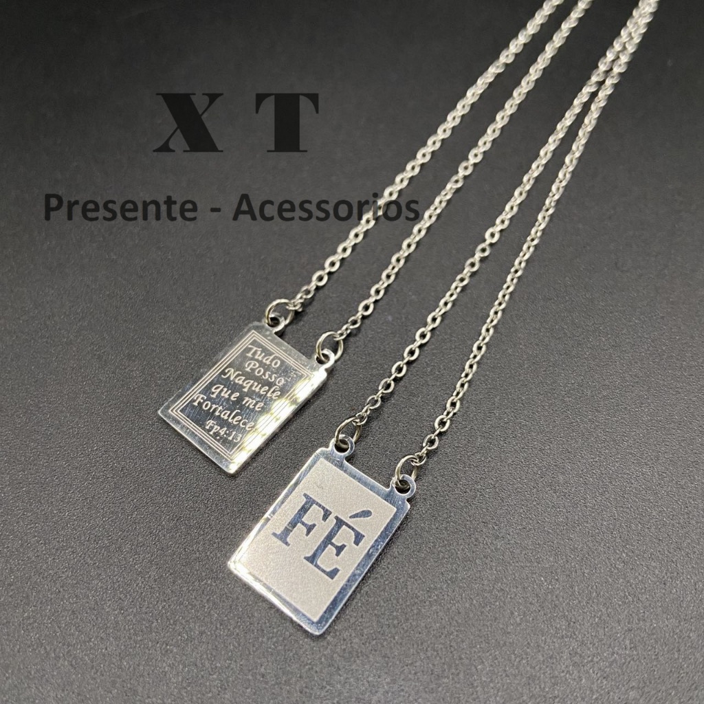 Escapulário de Oração Tudo Posso Naquele que Me Fortalece e Jesus da Fé Prata Aço inoxidável 316L