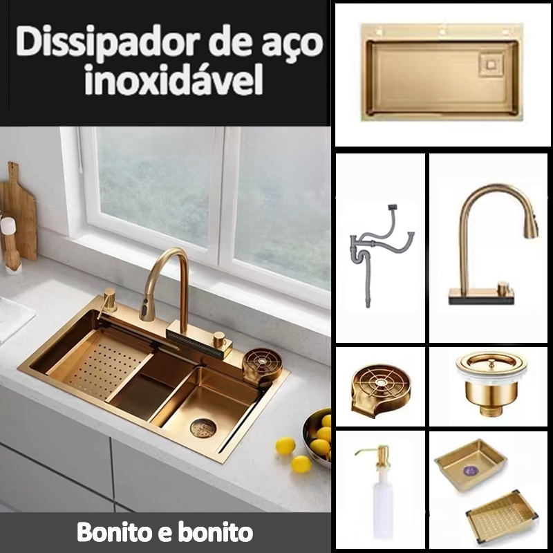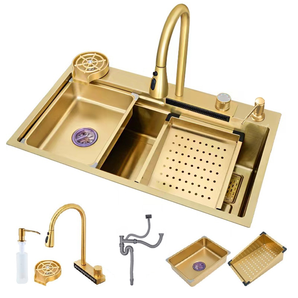 Cuba Delicious Cozinha Sink Aço Inoxidável Copos Dourada Com Torneira Fixada
