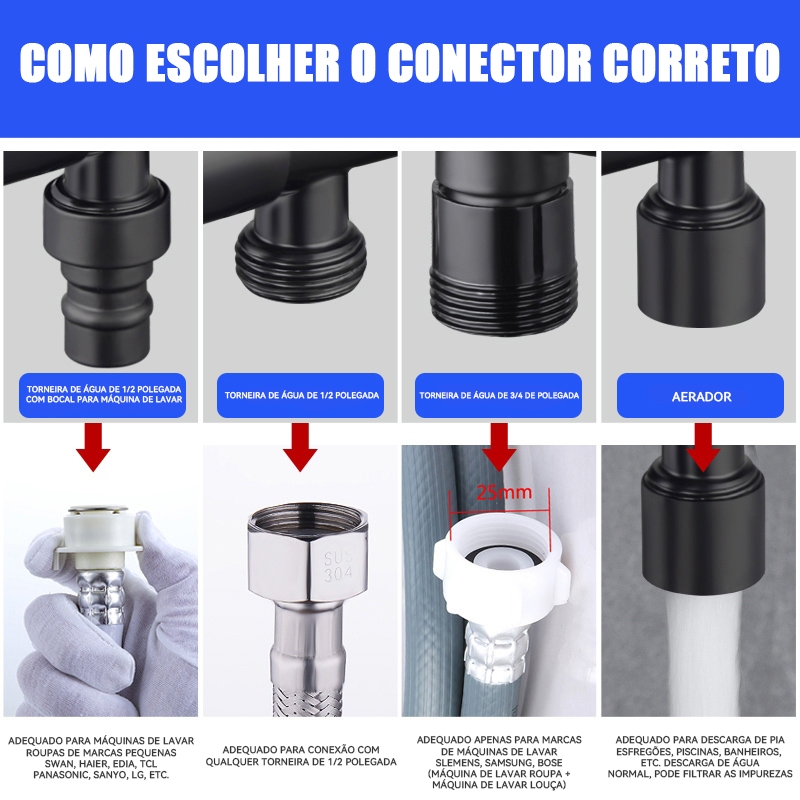 Registro Duplo para Ducha Higiênica com Dupla Saída de Água SUS 304 FABN