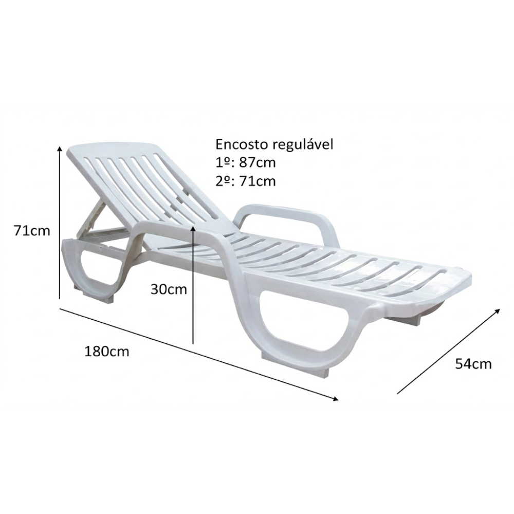 Kit 05 Espreguiçadeira Piscina de Plástico Pitangui Branca com Rodas