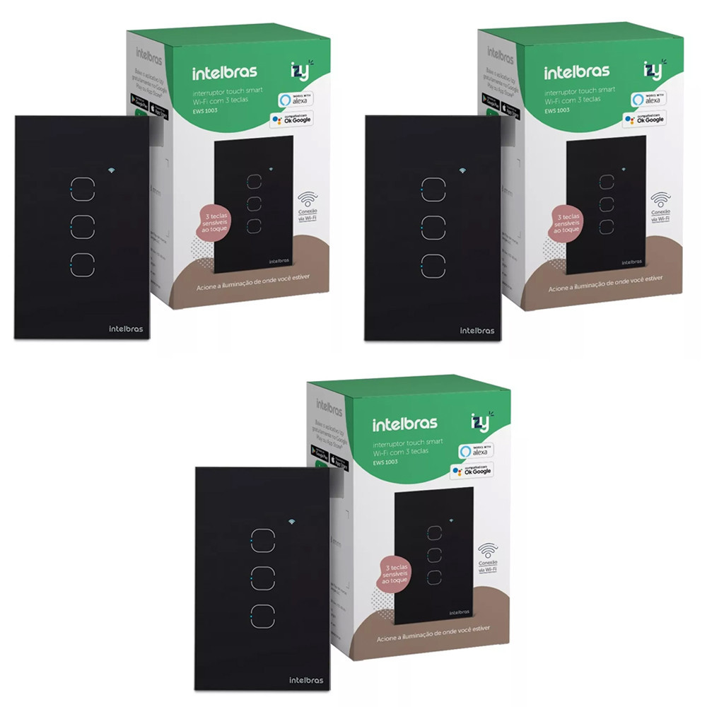 Kit 3 Interruptores Smart Inteligente Touch Wi-fi 3 Teclas Ews 1003 Intelbras