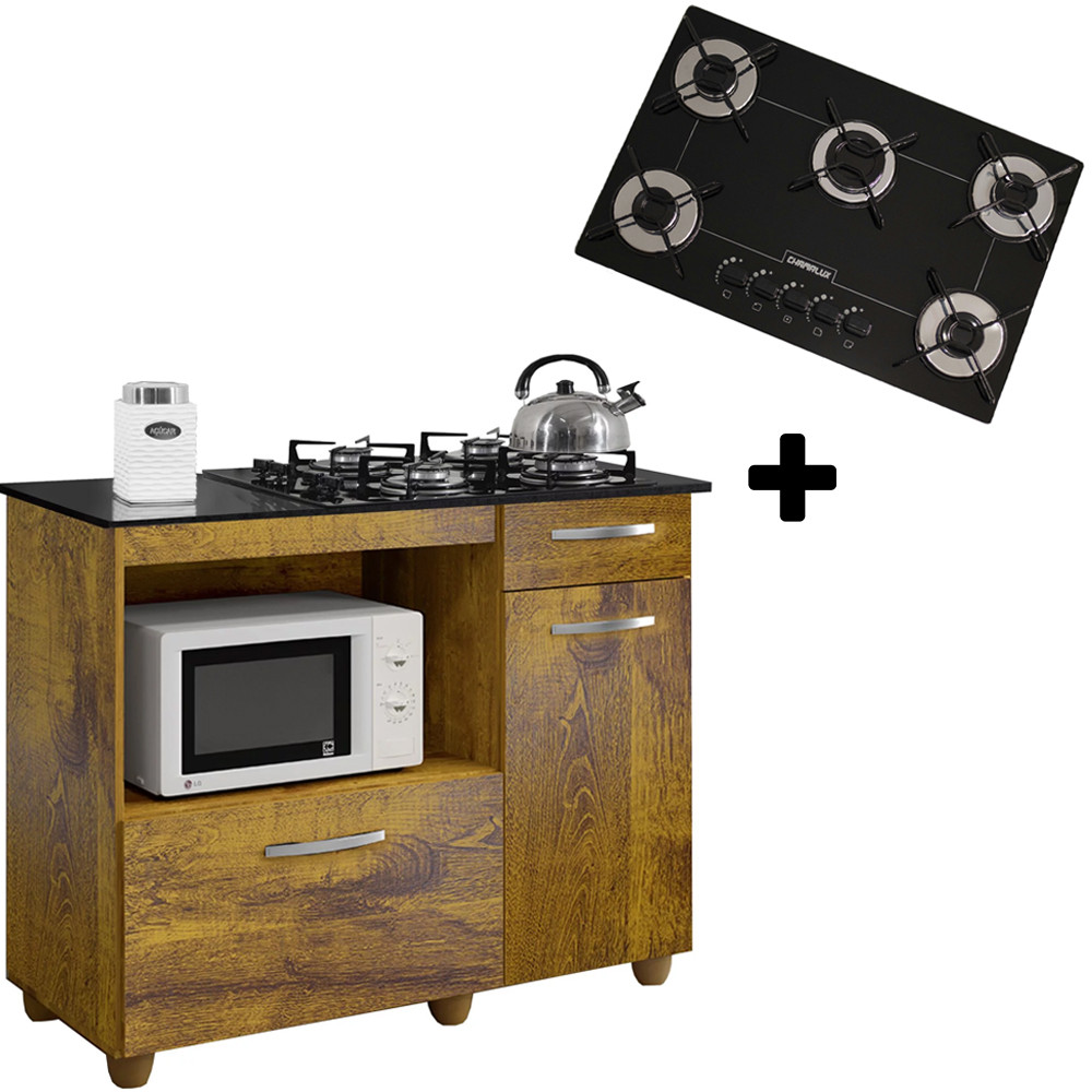 KIT BALCÃO 2 PORTA BASCULANTE VIOLETA MAIS COOKTOP FOGÃO 5 BOCAS BIVOLT