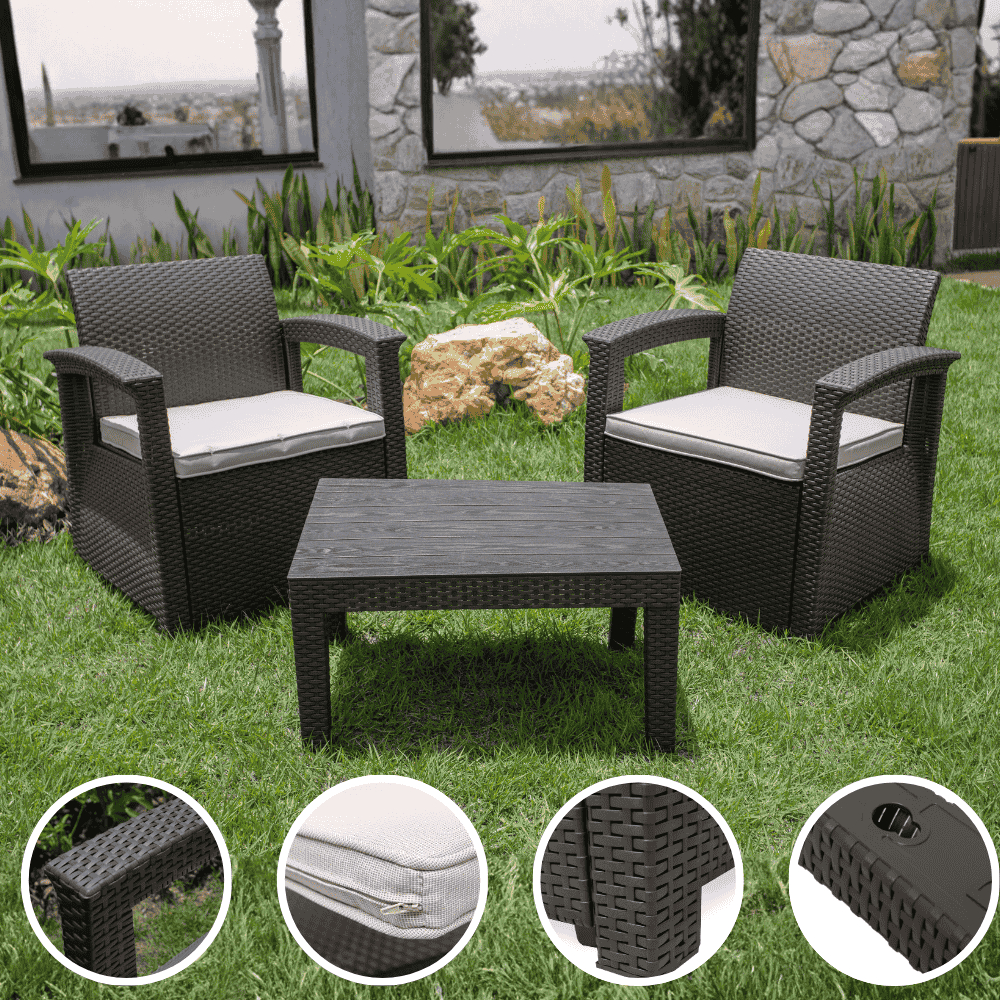Conjunto Poltronas para Jardim 2 Lugares com Mesa de Jardim e Área Externa Rattan Syberflex