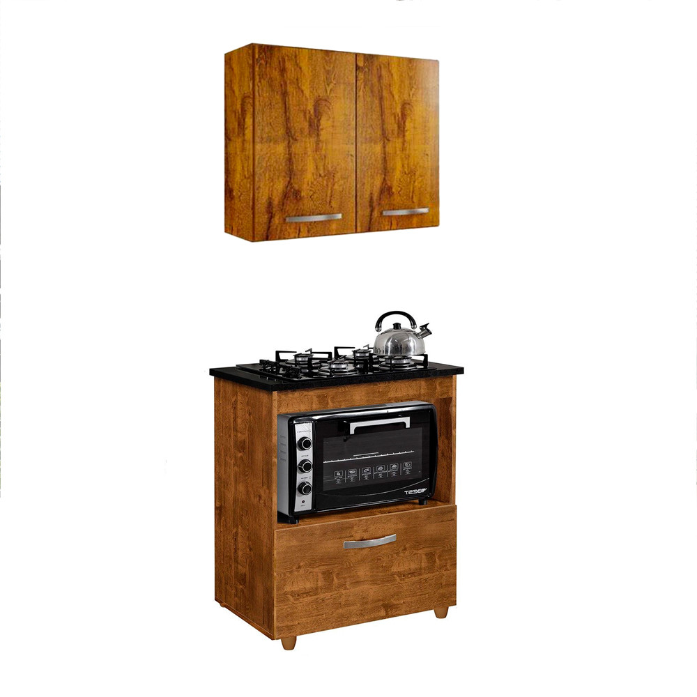 Kit Cozinha BalcÃO 5 Bocas Salvia Mais ArmÁRio AÉReo 2 Pt