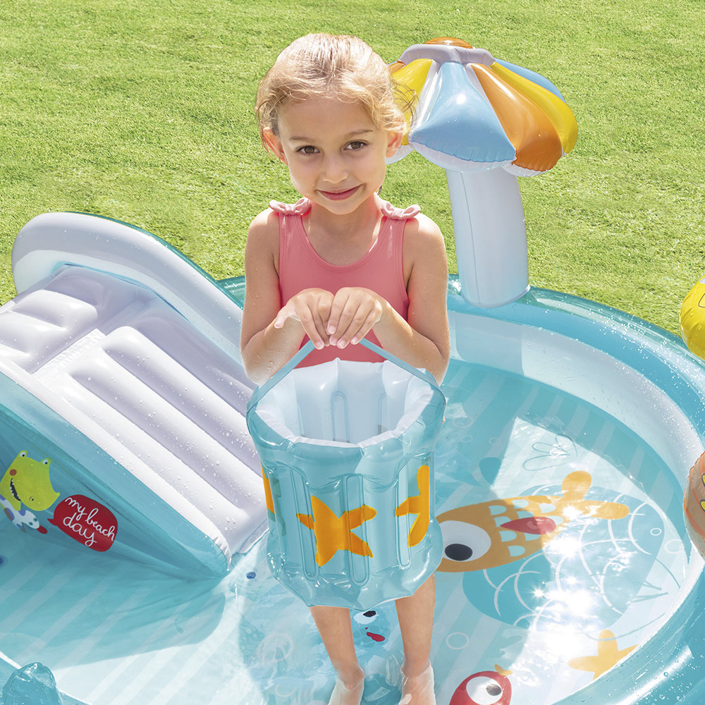 Piscina Infantil Playground Jacaré Esguicha Água Inflável 160 Litros - Intex