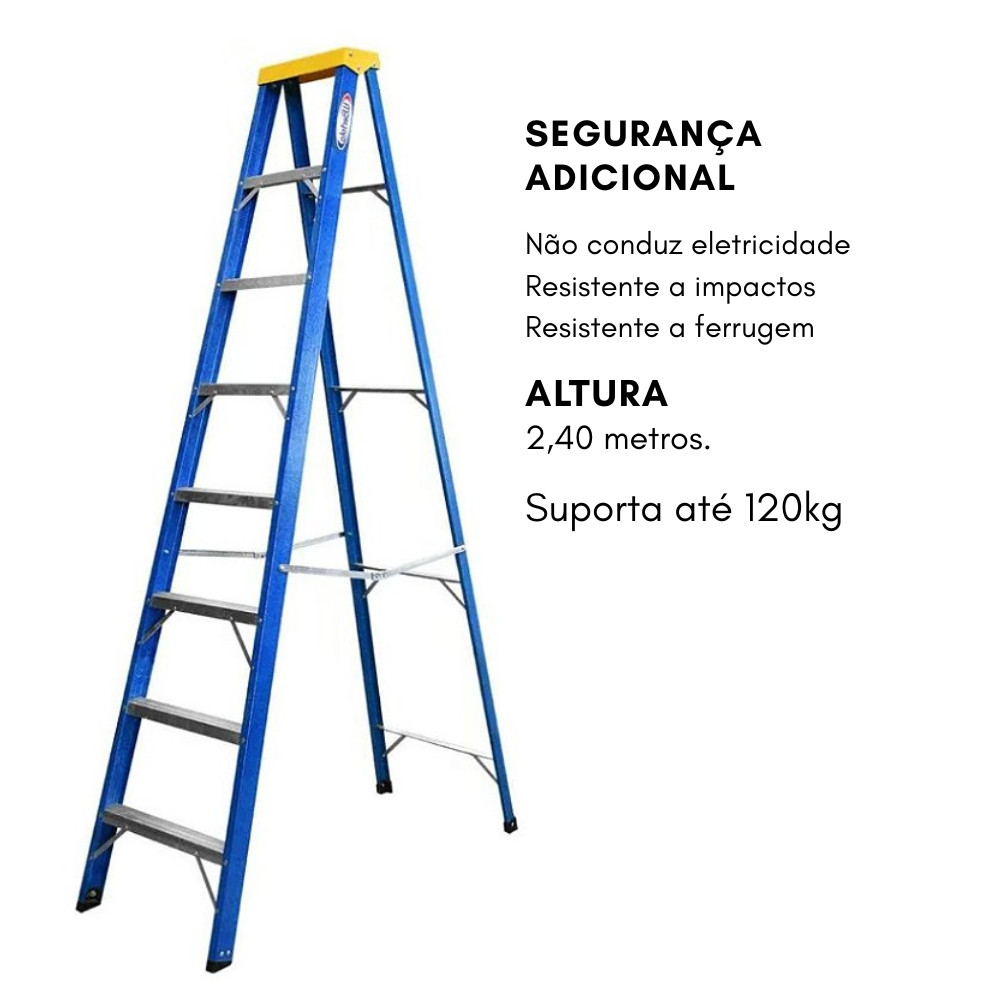Escada de Fibra Alumínio Tesoura Simples Premium 2,40m 8 Degraus 120kg W.Bertolo