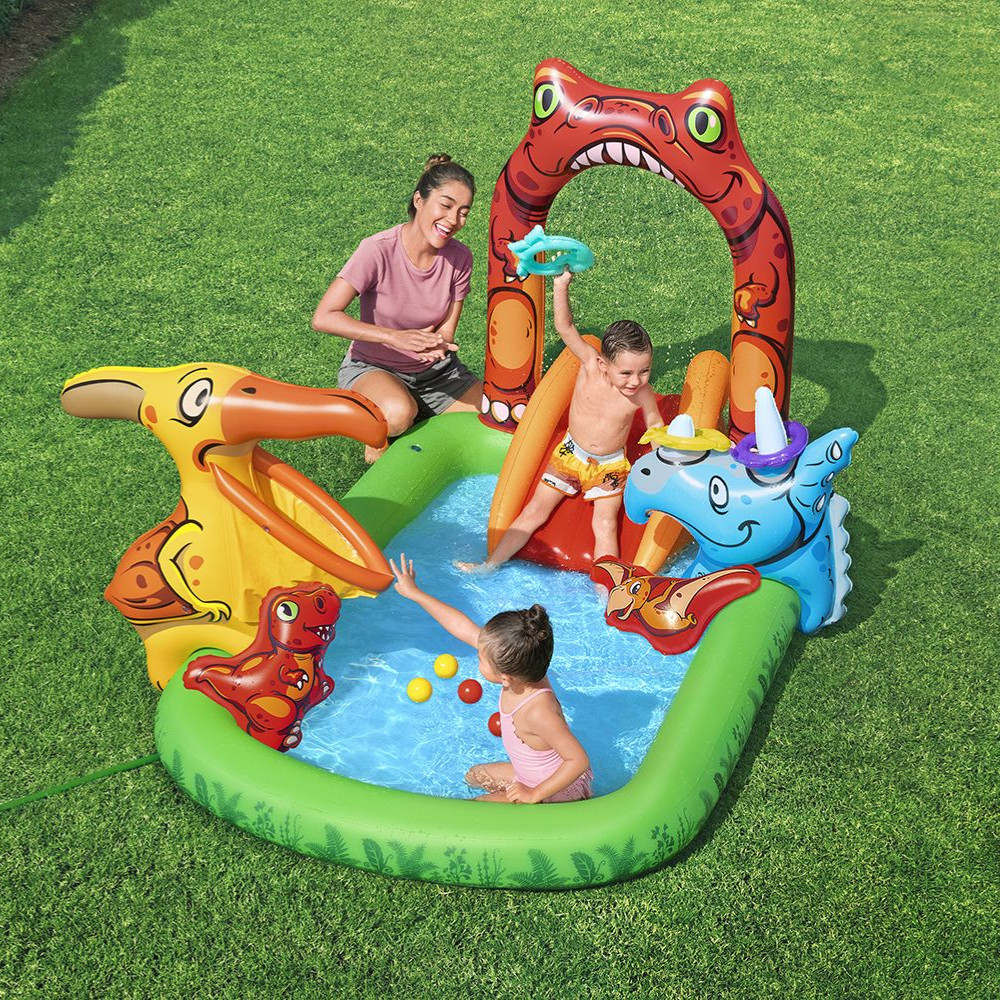Piscina Inflável Infantil Playground Dinossauro 190L Bestway com Acessórios e Bomba Manual Bestway
