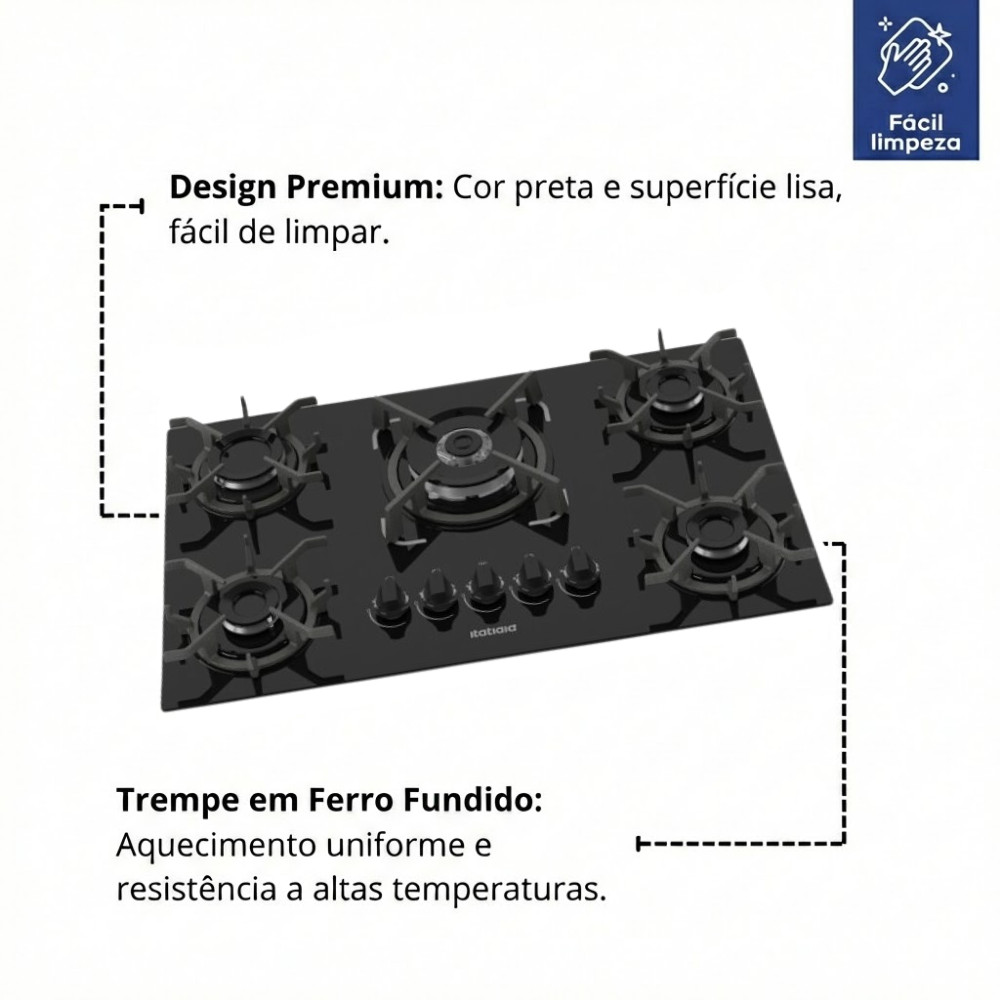 Fogão Cooktop 5 Bocas Tripla Chama Itatiaia Trempe Ferro Fundido Itacook New