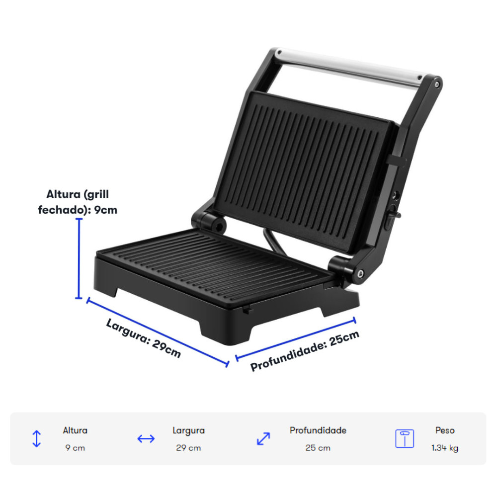 Sanduicheira Grill Essencial Inox 1000W 127V Abertura 180º Itatiaia
