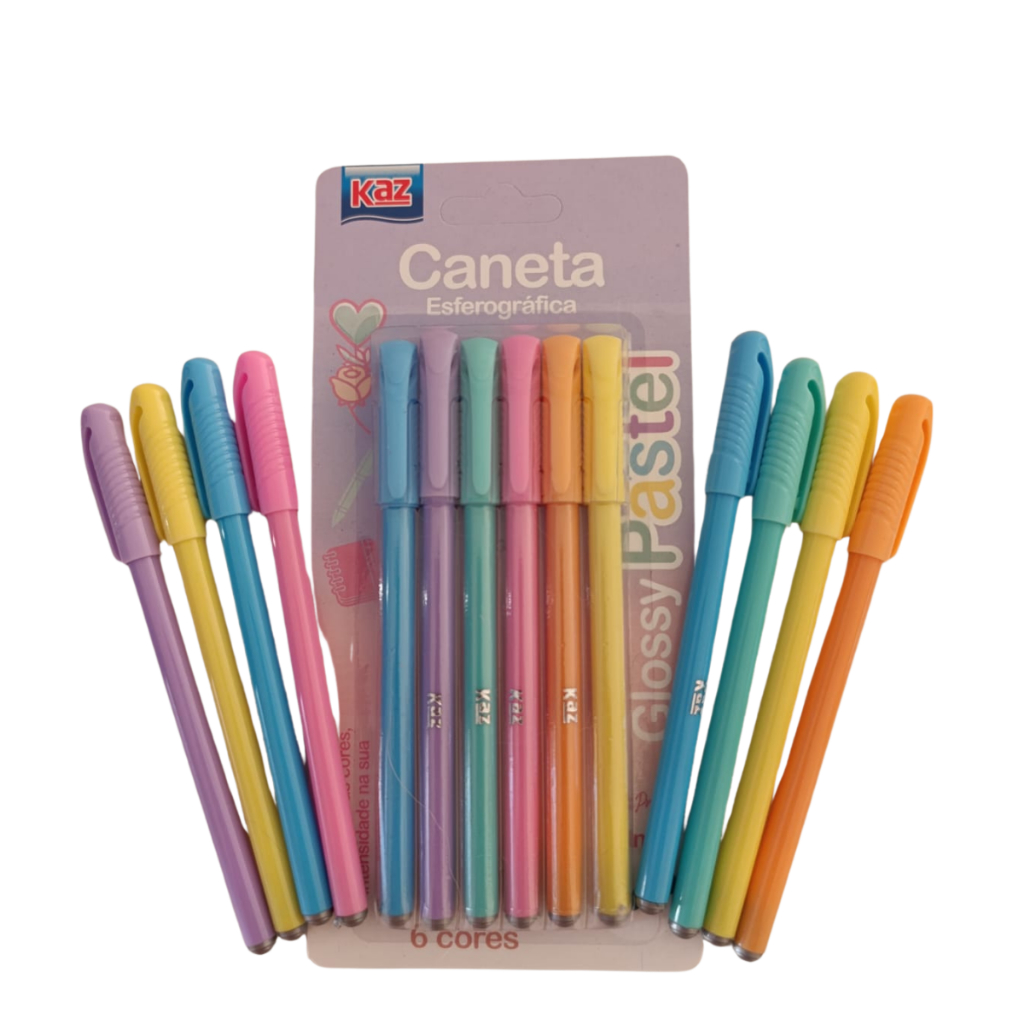 Kit Atacado Pacotes Canetas em Tons Pastel Esferográficas Escrita Suave 1.0mm Glossy KAZ 6 UN Cada