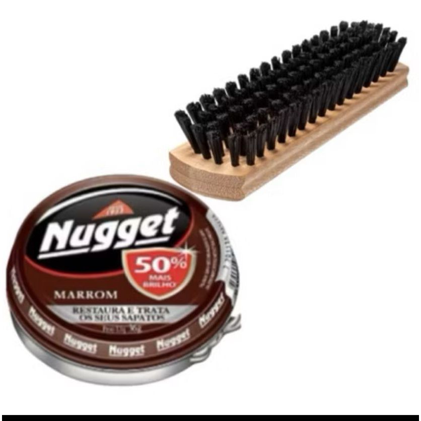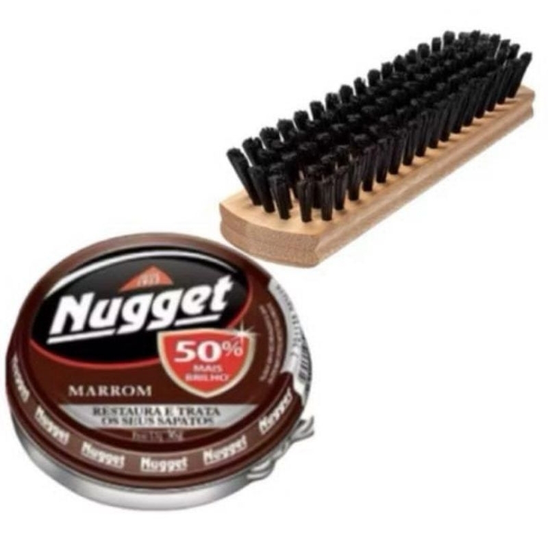 Kit 1 Escova De Sapato + 1 Graxa Pasta Nugget Preta ou Marrom Lata 36g