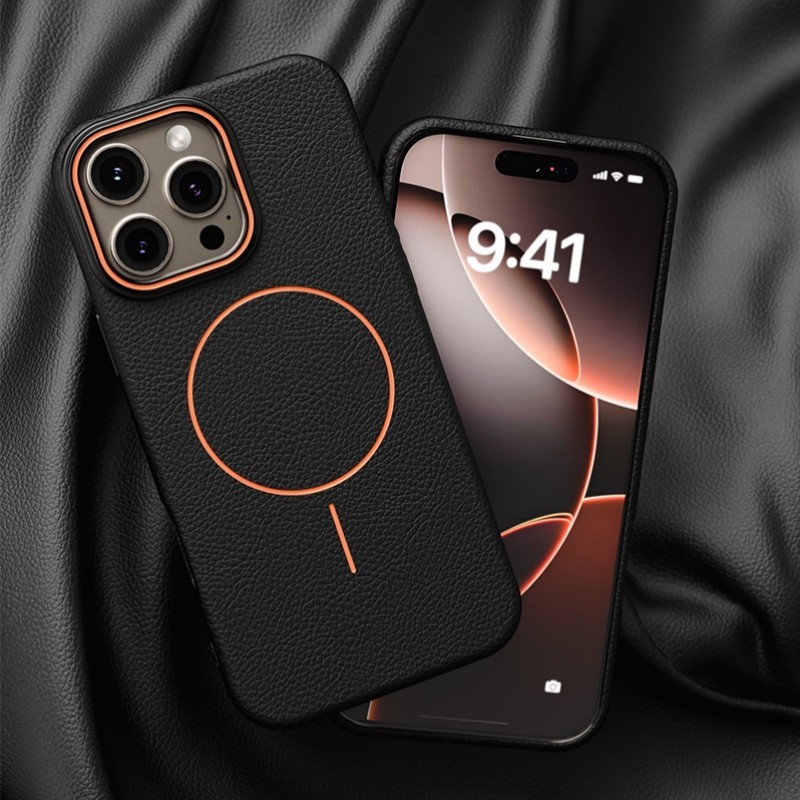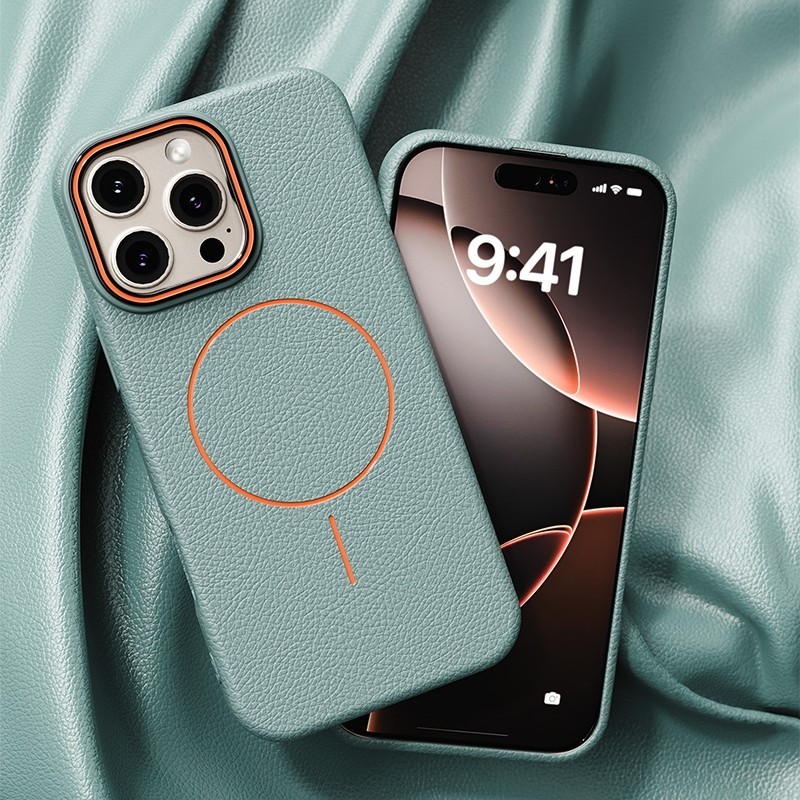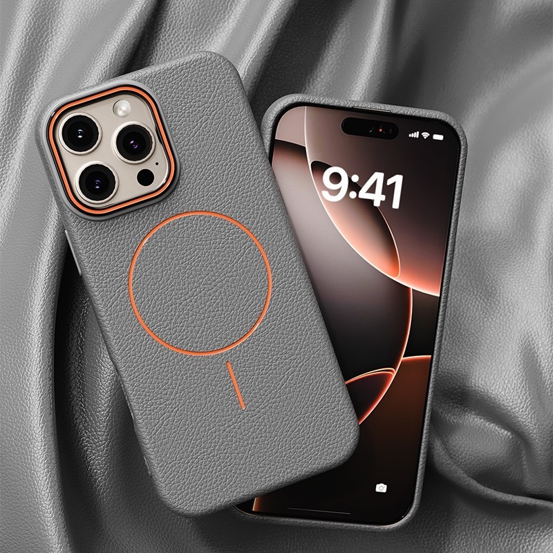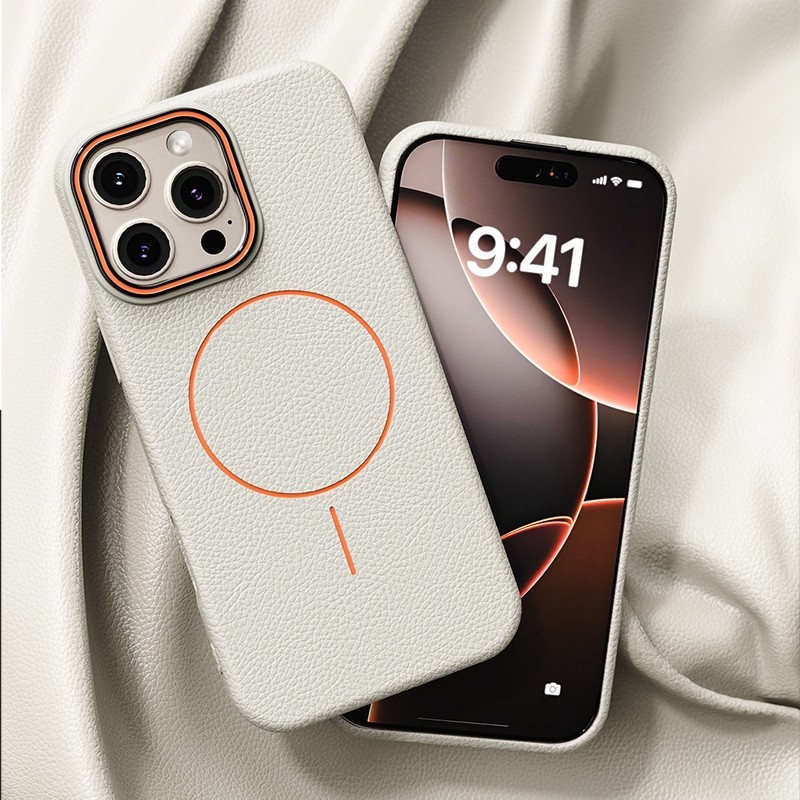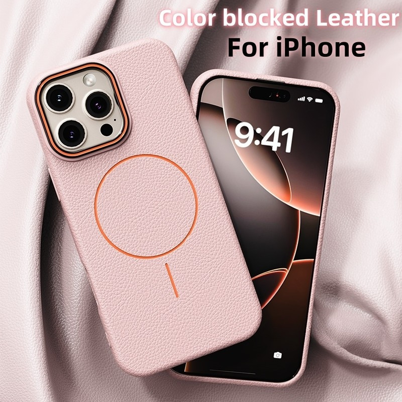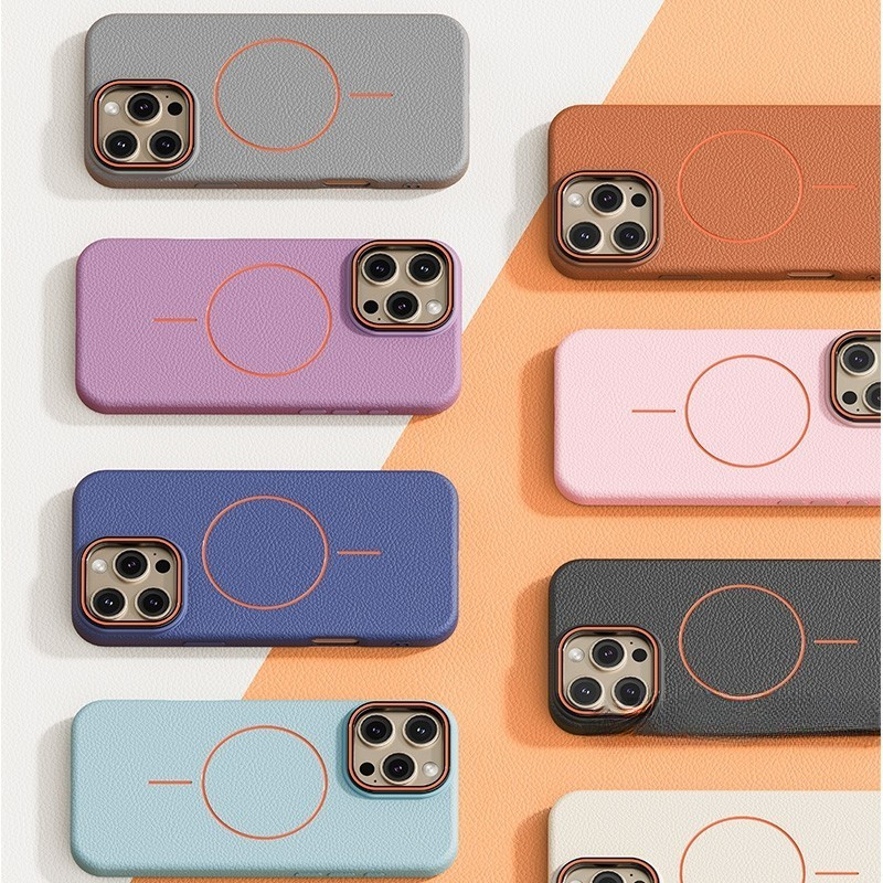 Capa De Couro Bloqueada De Cor Magnética De Círculo Fino Avançado Para IPhone 16 15 14 13 12 11 Pro Max PLUS Macia Anti-