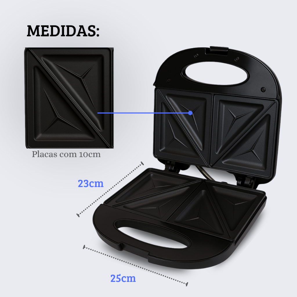 Sanduicheira Multifuncional Elétrica 110V Ou 220V 2 Sanduiches Antiaderente 750 Watts