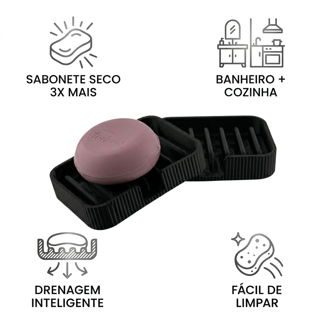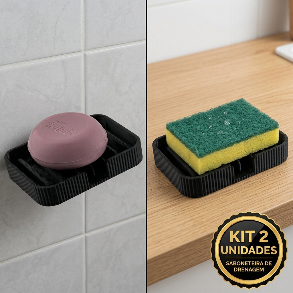 Kit 2 Saboneteiras com Drenagem | Banheiro + Cozinha Economize | Porta Sabonete Esponja Anti Meleca