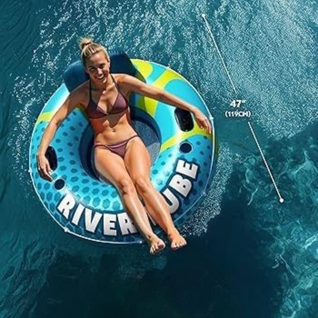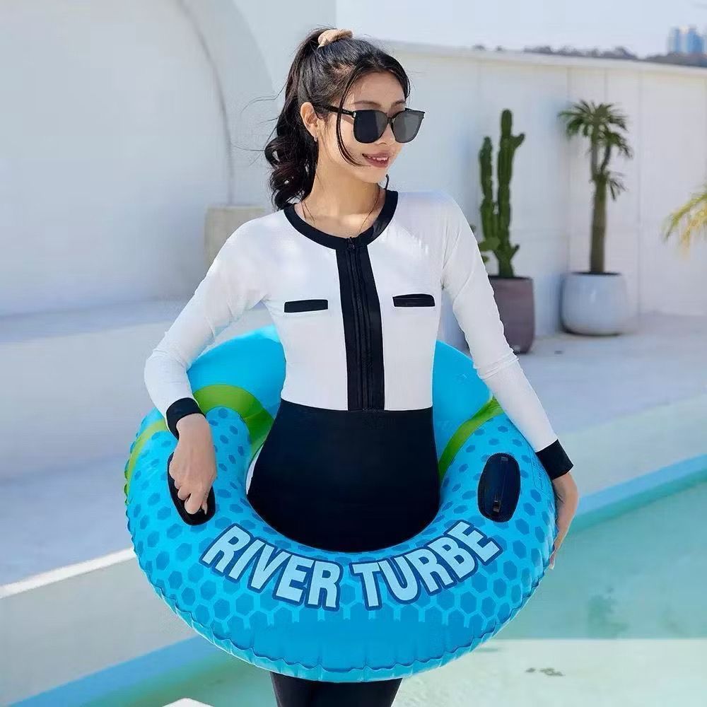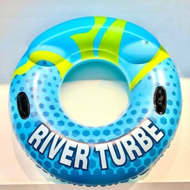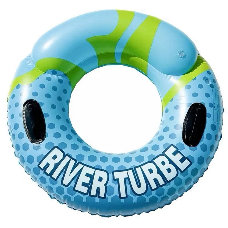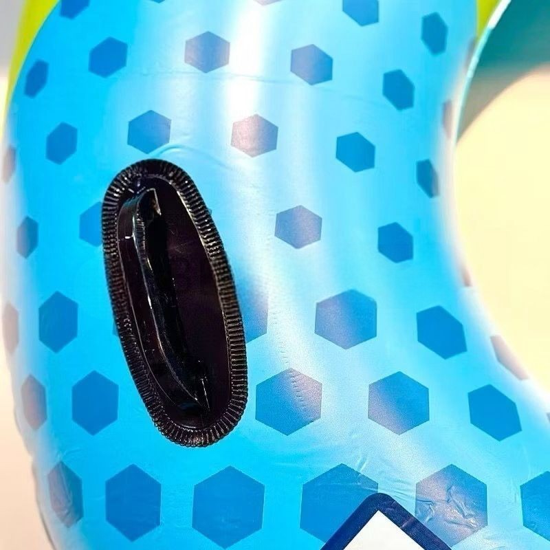 Boia para adulto com alça e apoio de cabeça, azul, com inscrição, 80/90/100cm