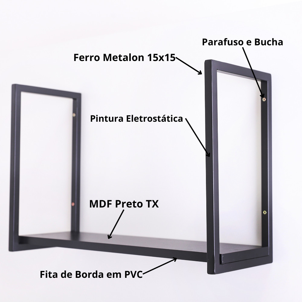 Prateleira Estilo Industrial De Parede Metal Suporte 30X50X18 1 Nível