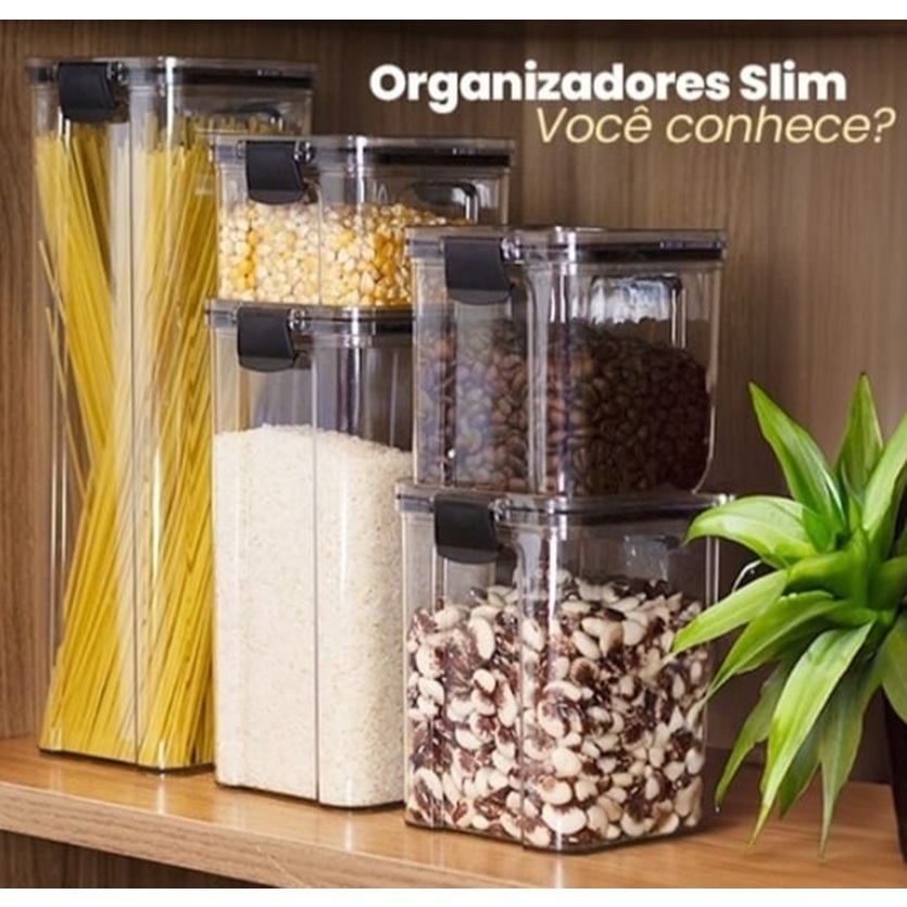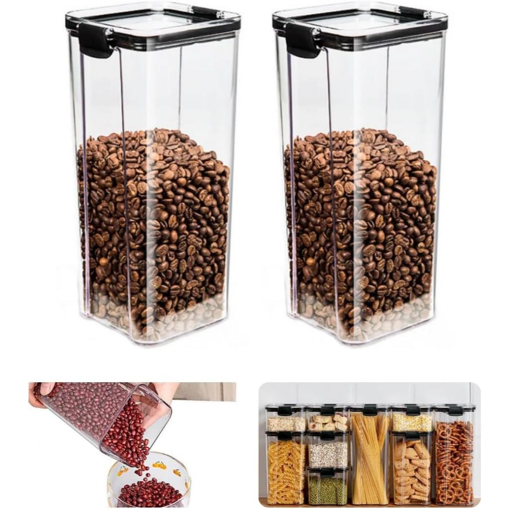 Kit 2 Pote Hermético 2,15L Tampa Acrílico Porta Mantimento Arroz com Trava Lateral