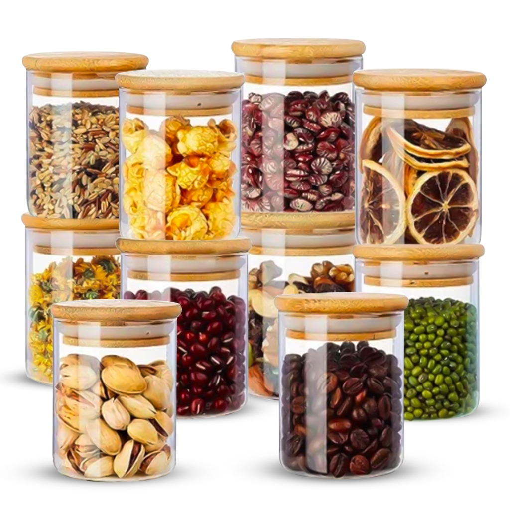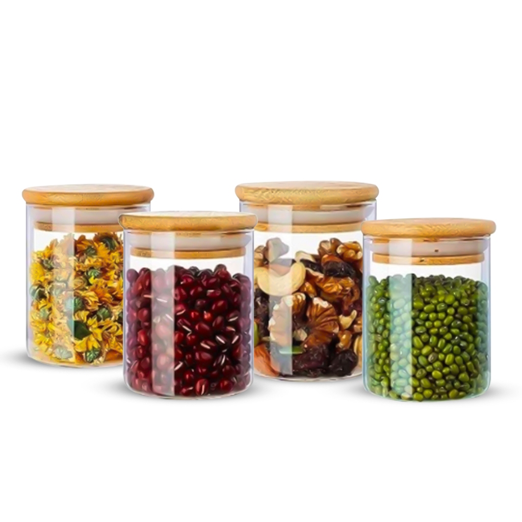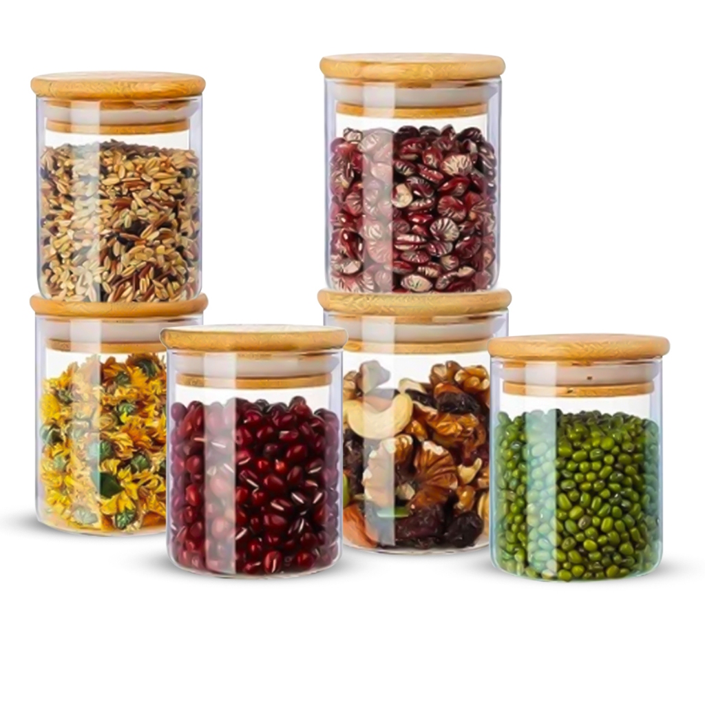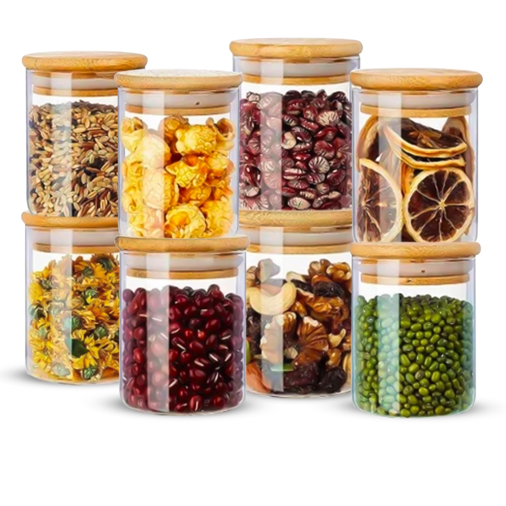 Kit Potes Hermético 200ml De Mantimentos Redondo Com Tampa Bambu