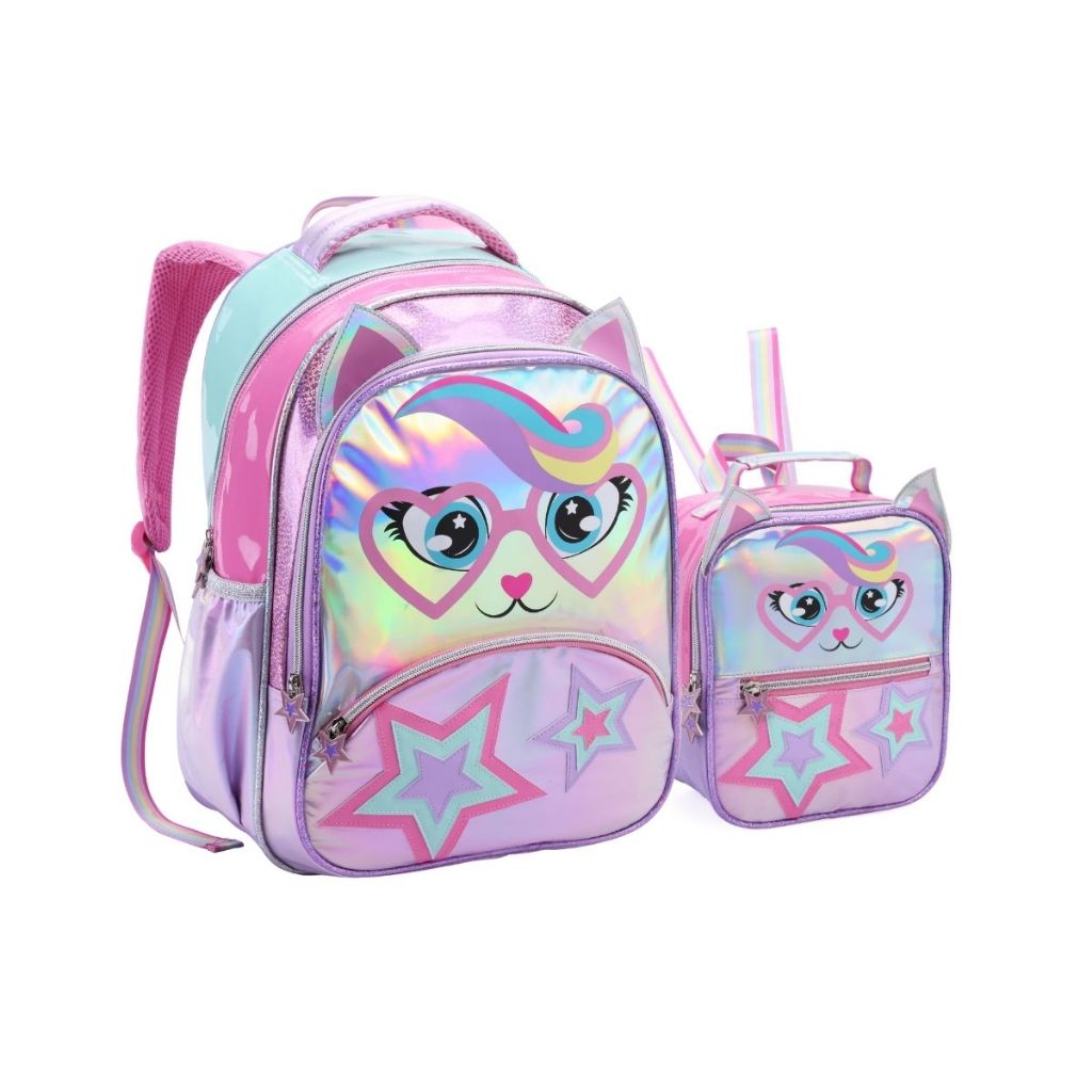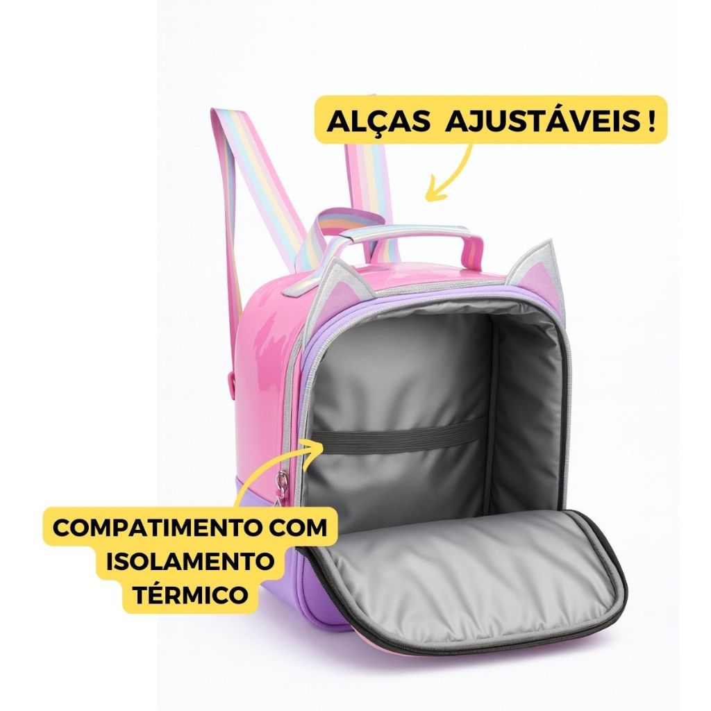Kit Mochila Costas Lancheira Gatinha Panda Escolar Meninas