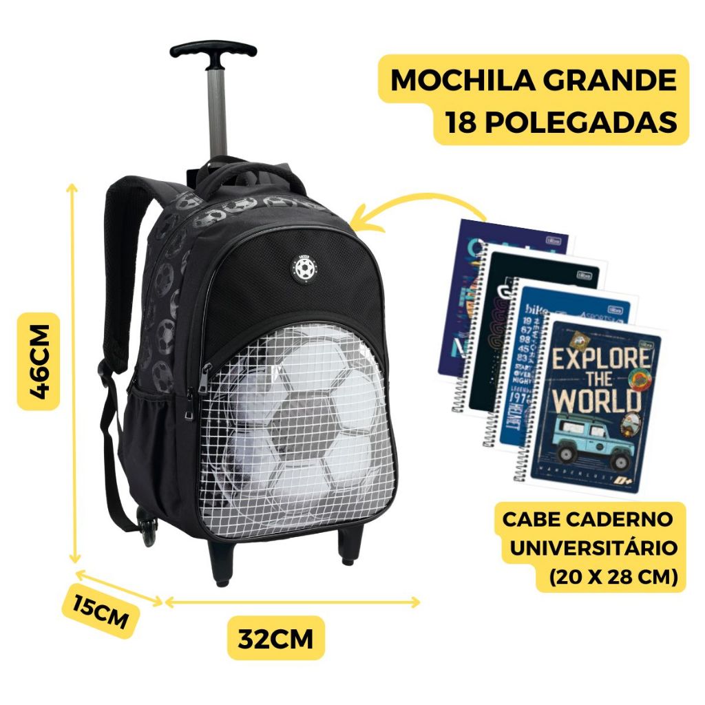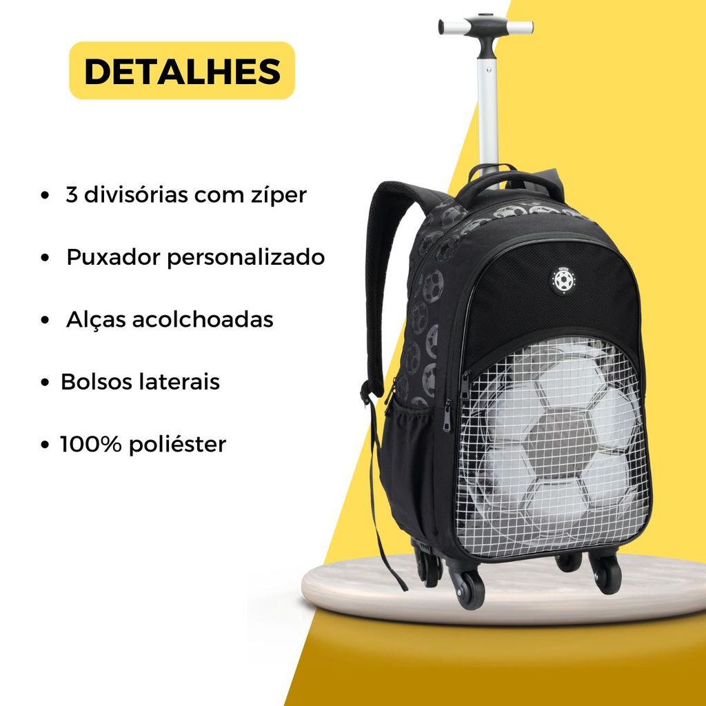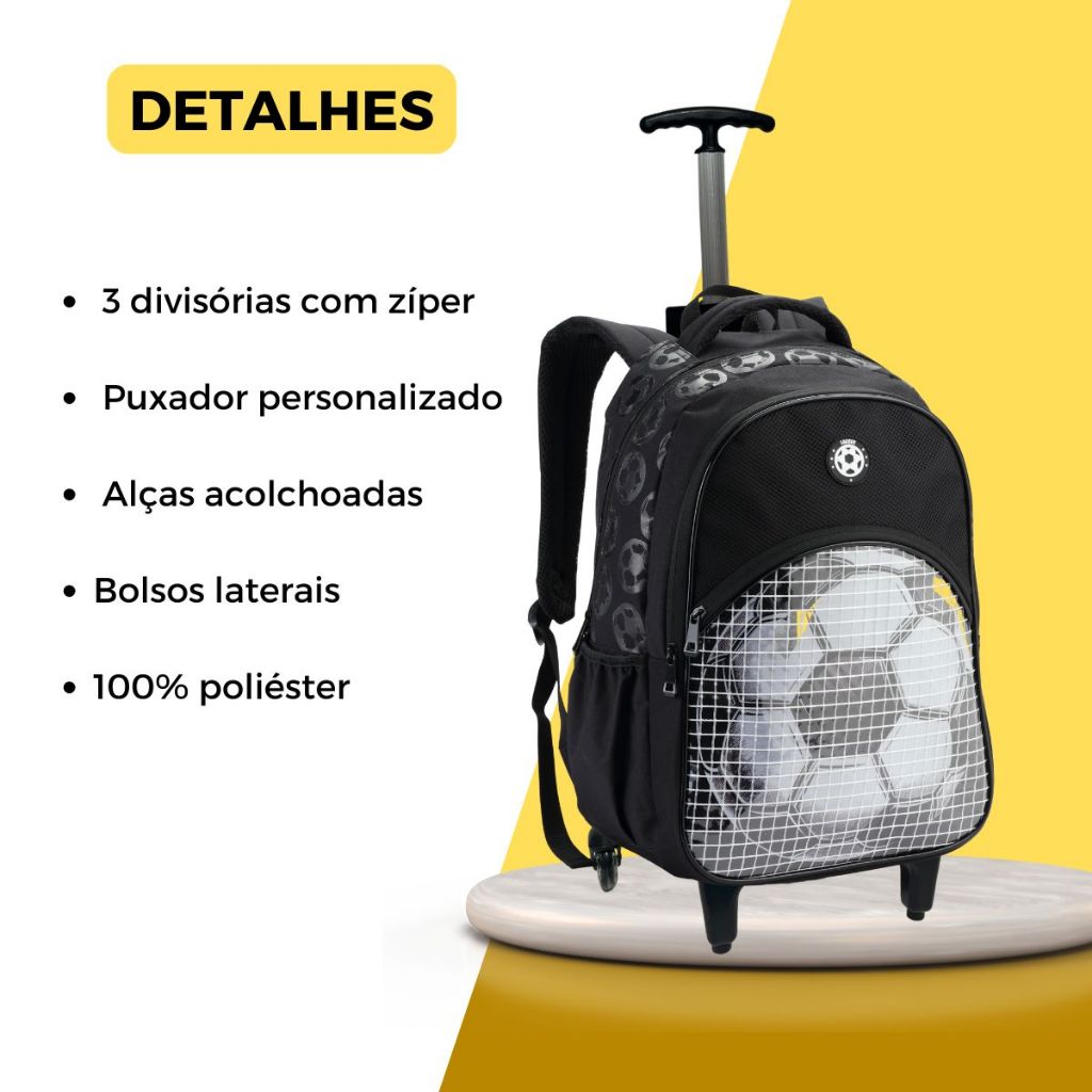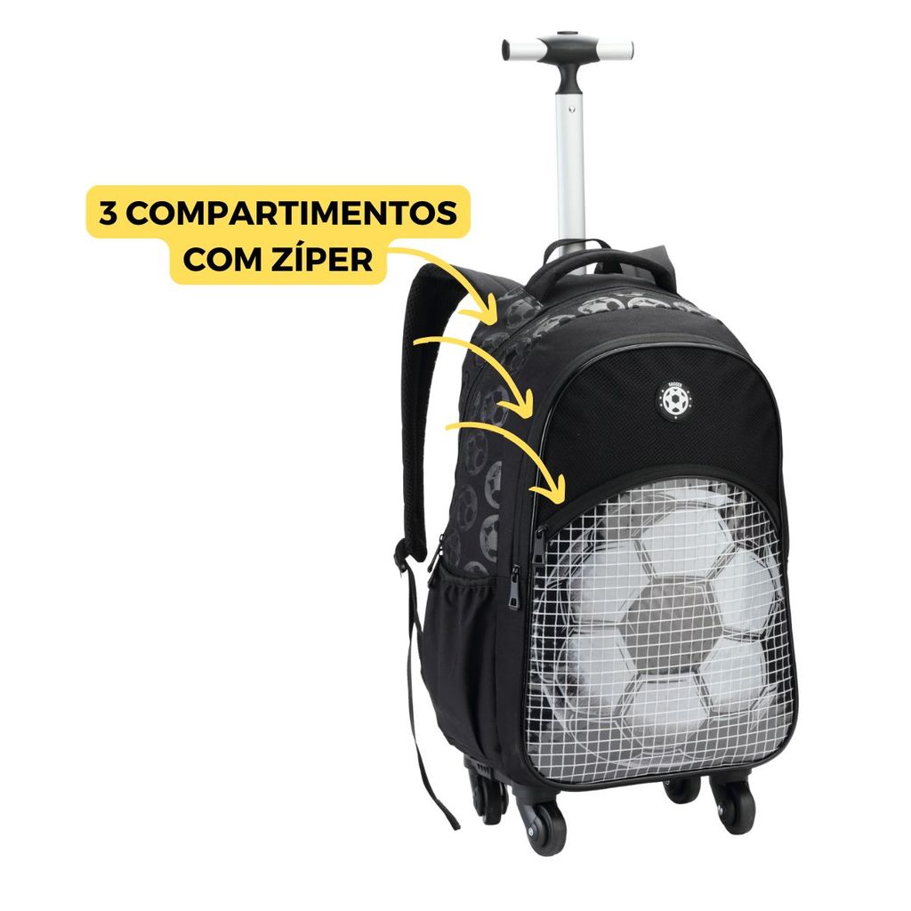 Mochila de Rodinhas Bola de Futebol Escolar Meninos