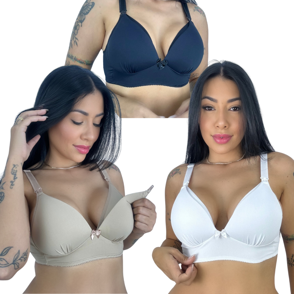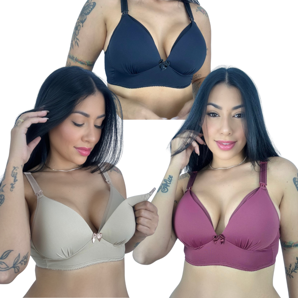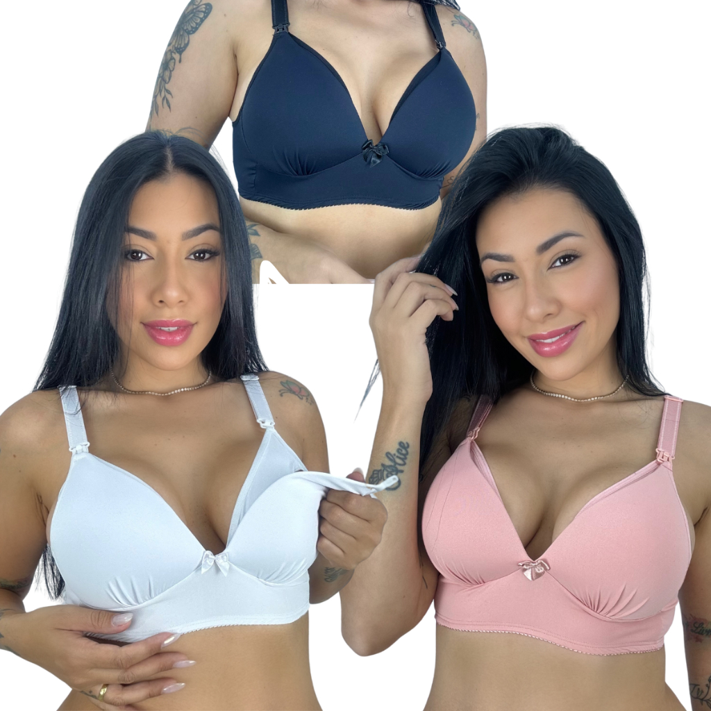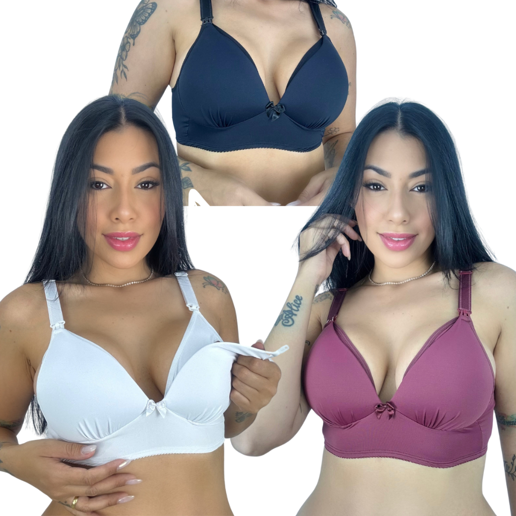 KIT C/3 Sutiã Amamentação com Bojo Soft todo em Micro Facil Amamentar Kelly