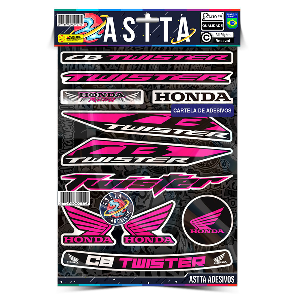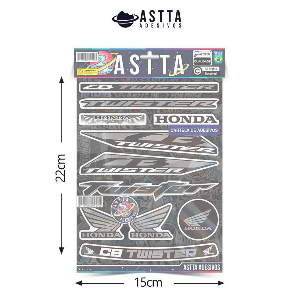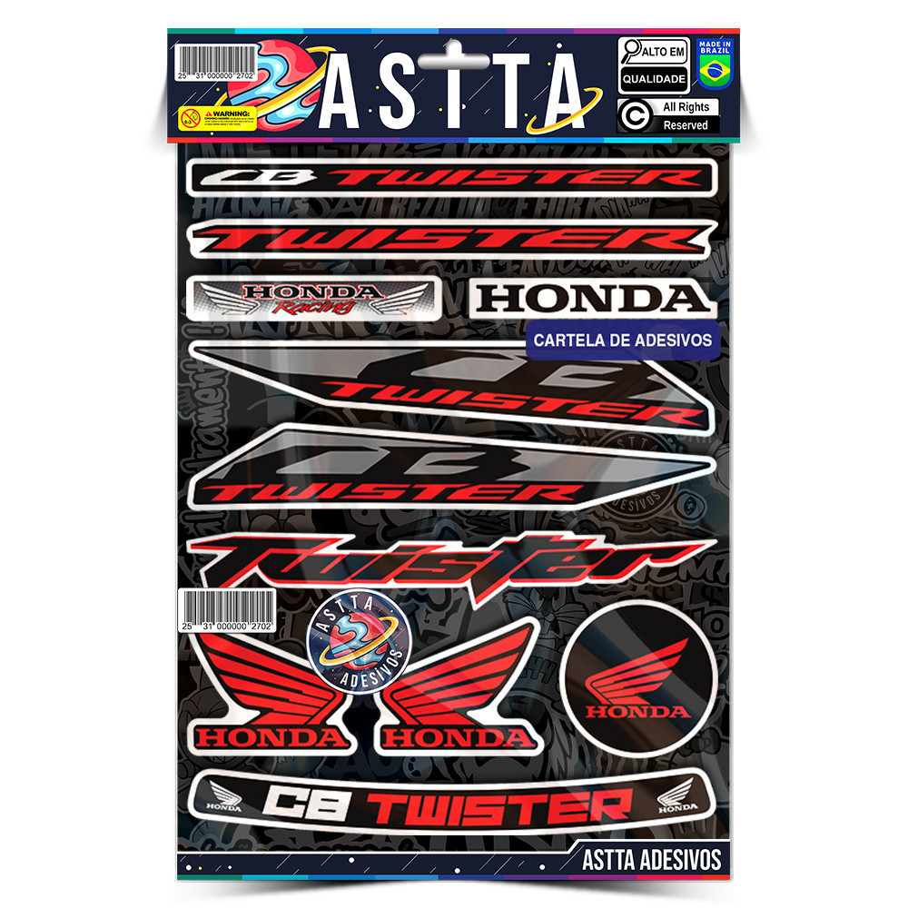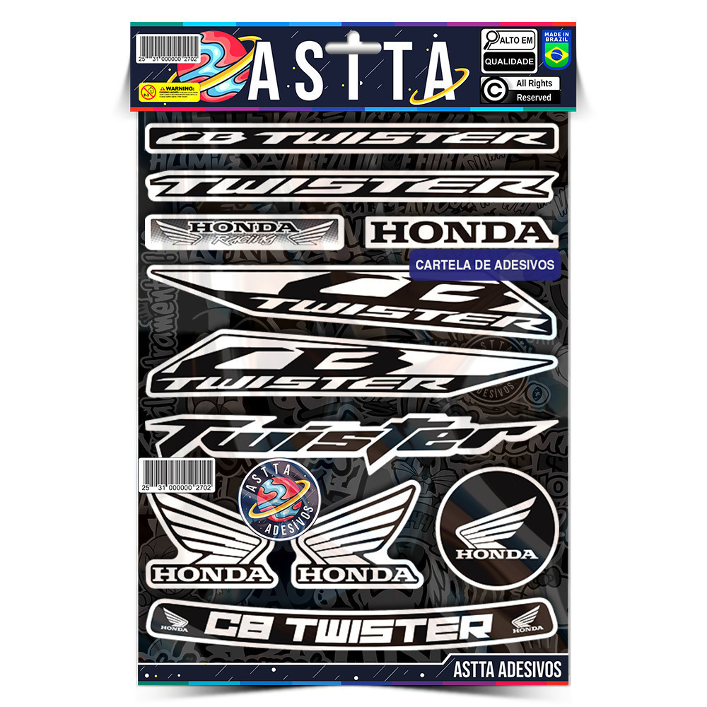 Cartela Adesivos Compativel com Honda CB TWISTER Varias Cores Kit Envernizado Sticker p Moto Capacete Viseiras