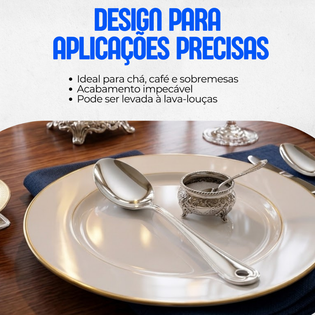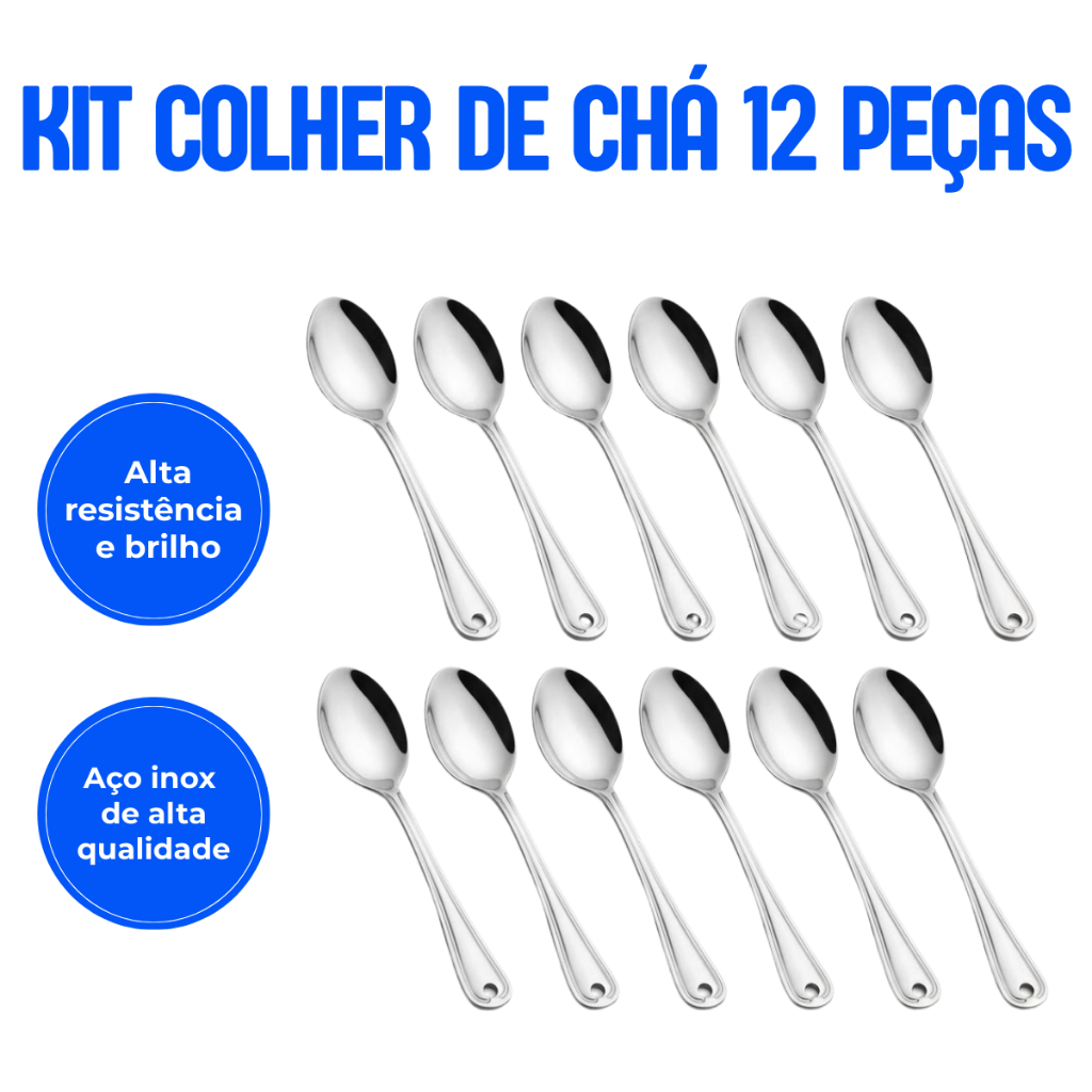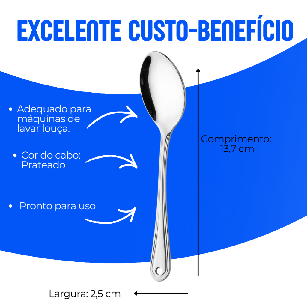 Kit 12 Colheres de Chá Inox 13 cm Resistente Pode Ir à Lava Louças