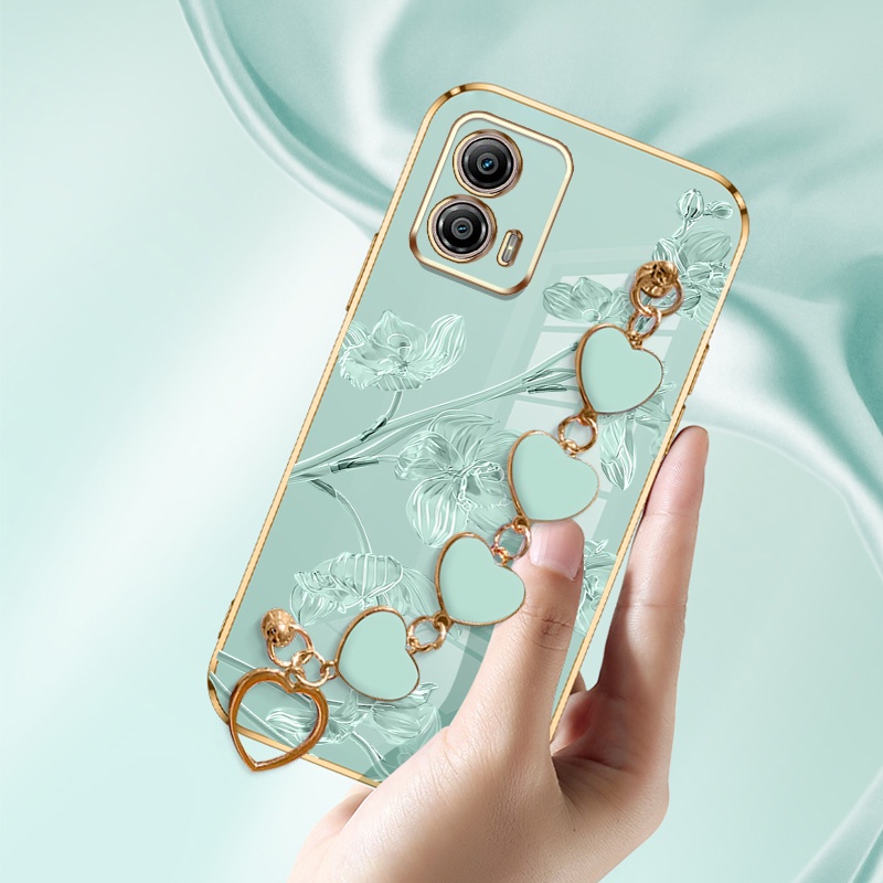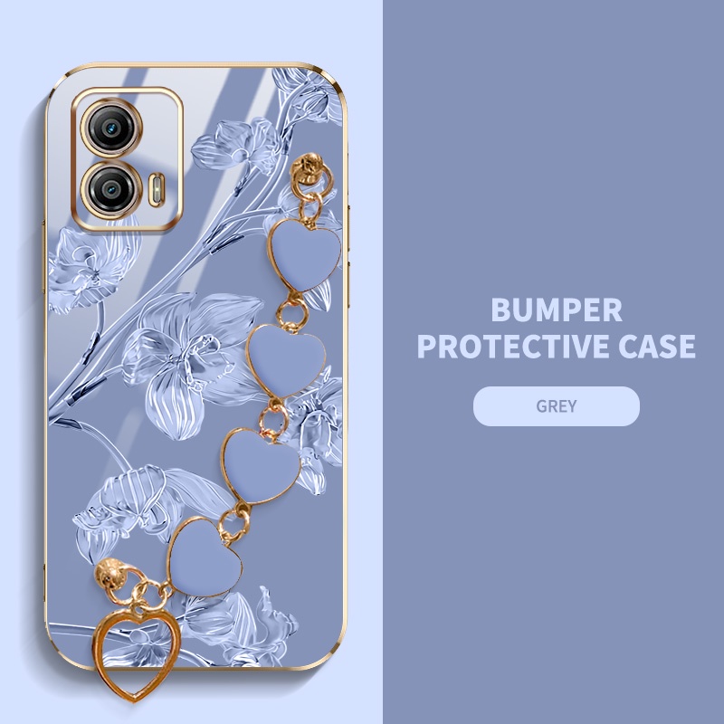 YBD Bracelete Do Amor Estojo De Pulseira Para Moto Motorola G24 G53 G73 G13 G23 G32 Bauhinia Padrão De Flor De Material De Silicone Macio Galvanizado Anti-Gotas