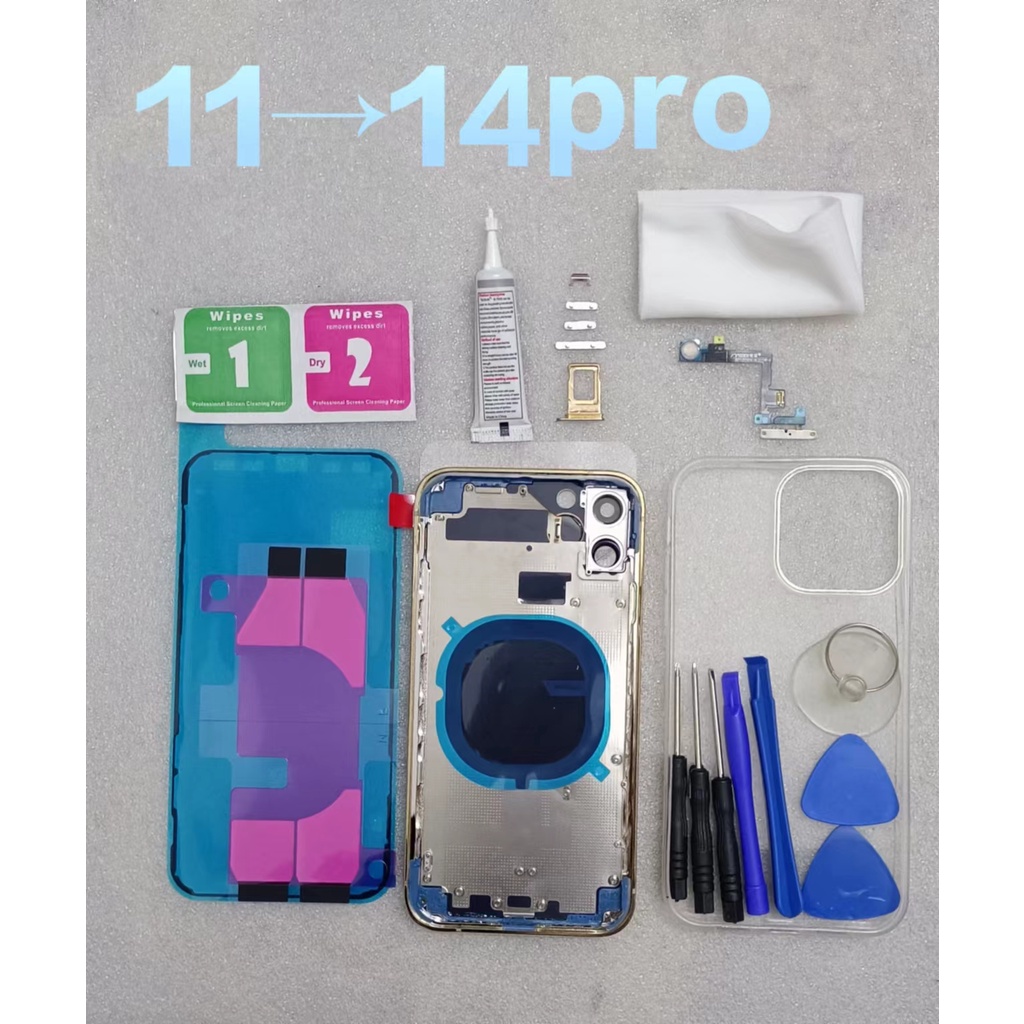 Diy Para iPhone11 Como 14pro 11 A 14pro Tampa Traseira Da Bateria + Estrutura Do Chassi Central + Bandeja SIM