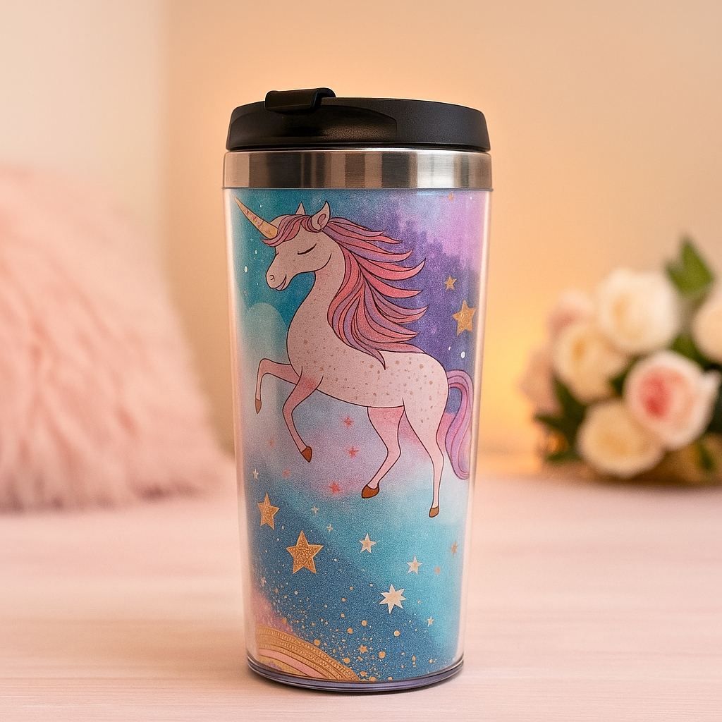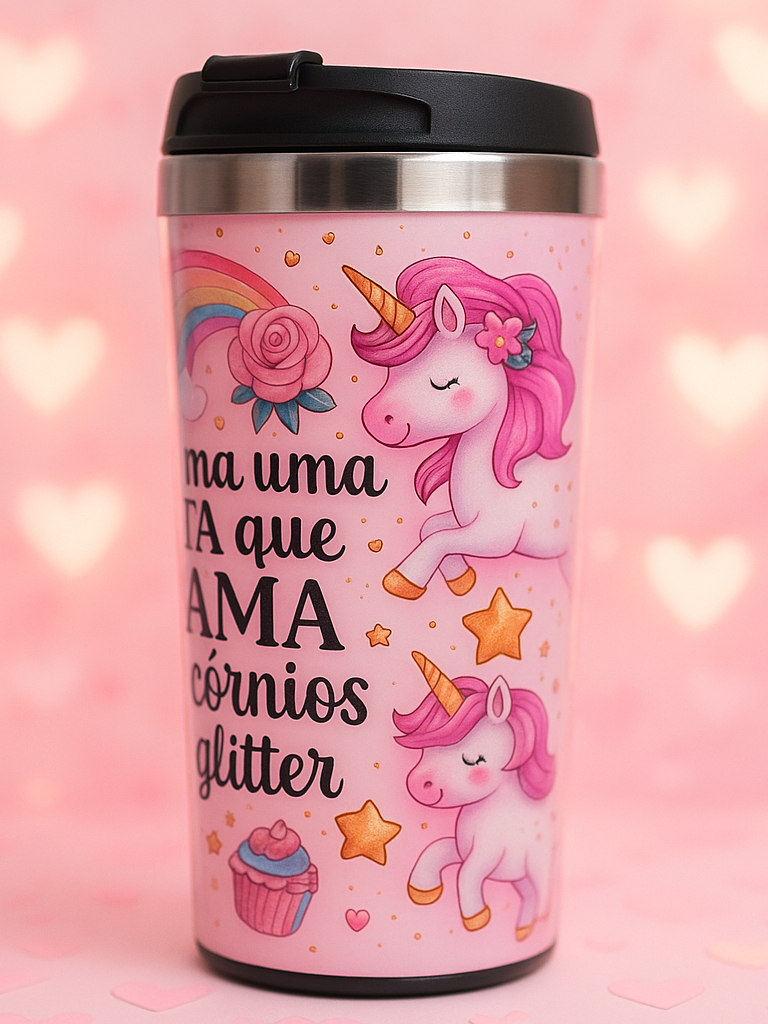 Coleção Copo Térmico Personalizado do Unicórnio Colorido