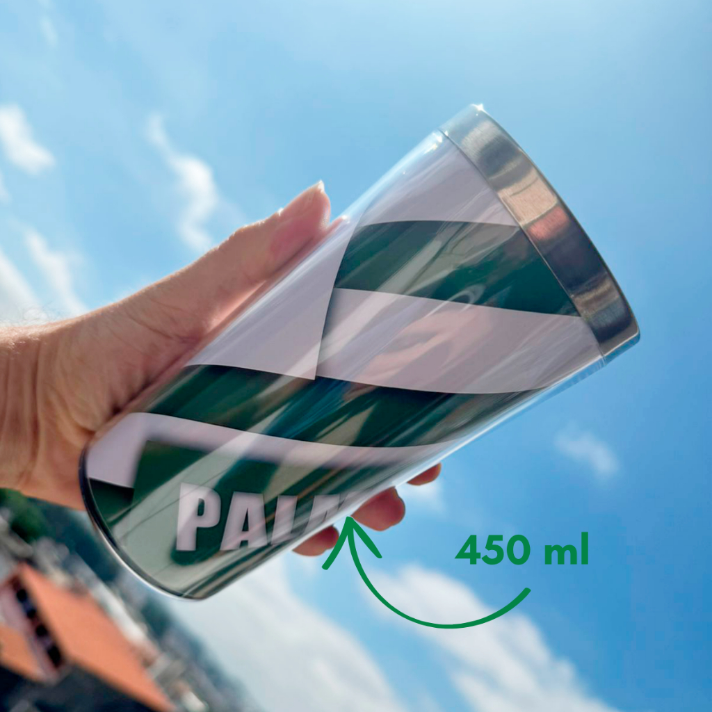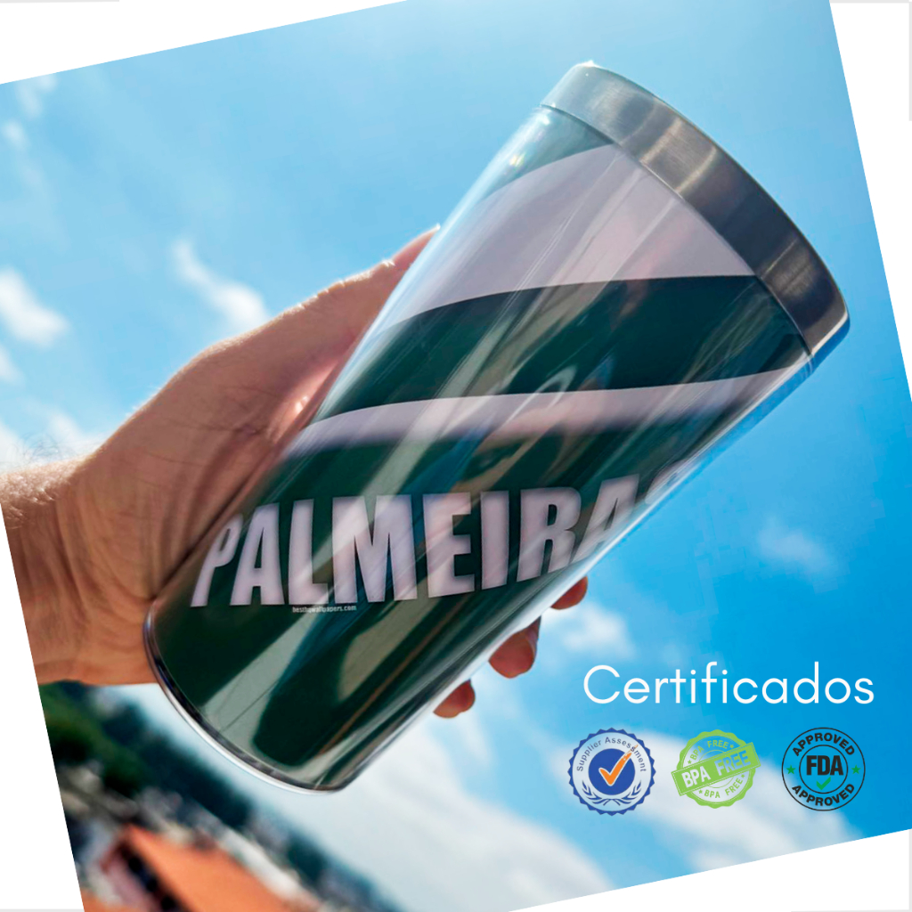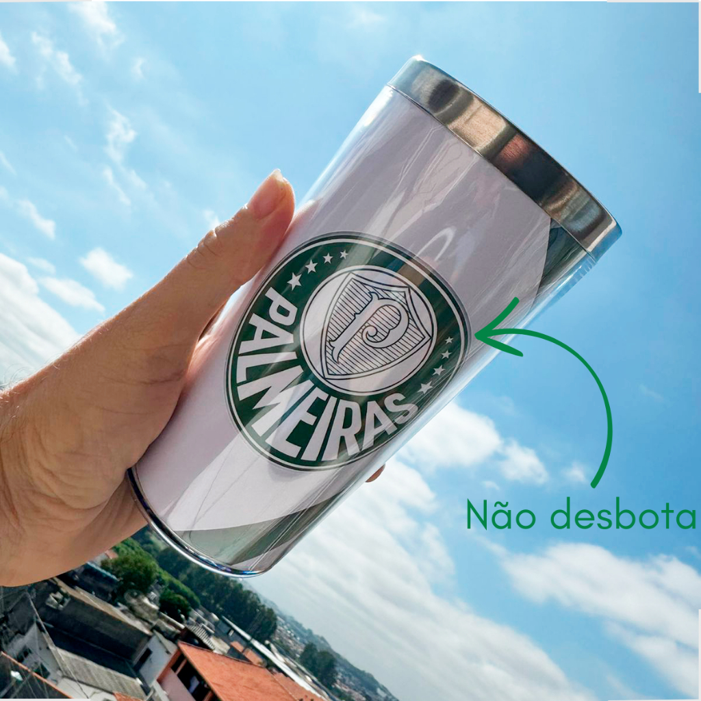 Copo Térmico Personalizado Inox Interno Palmeiras Alviverde 450 ml Cerveja e Chopp