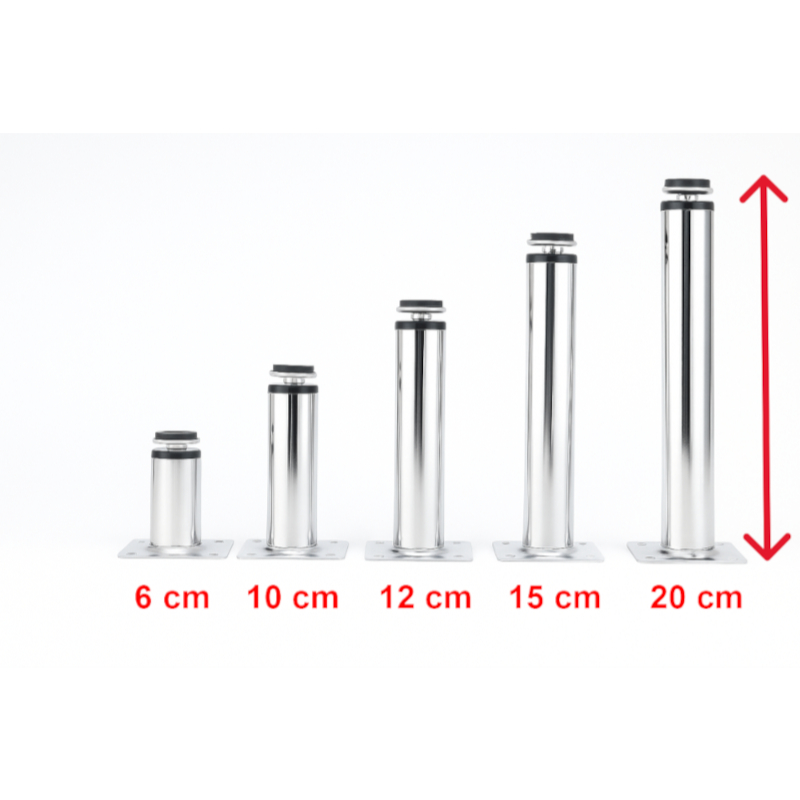 Kit com 4 Pés Metal Cromado 6 cm / 10cm/12cm/15cm /20cm Redondo ou Quadrado para armários/móveis em geral