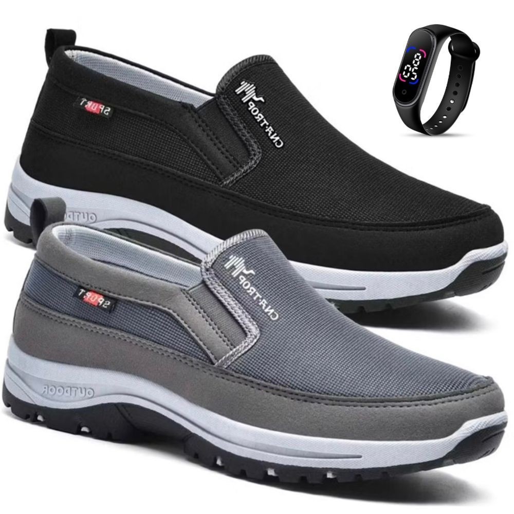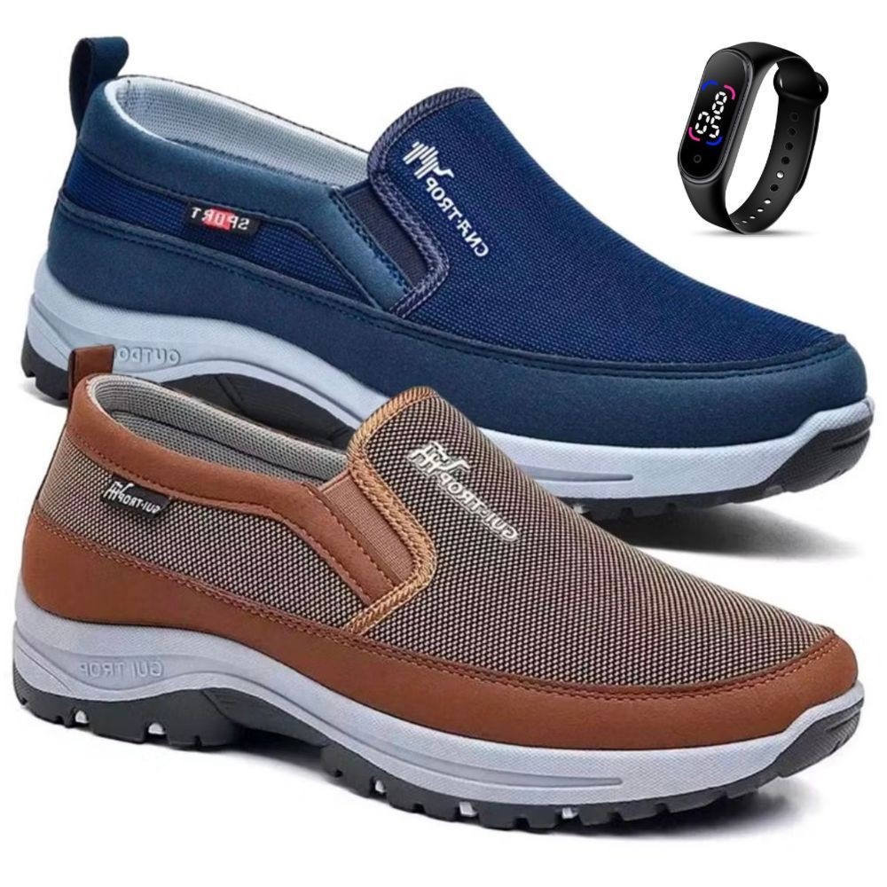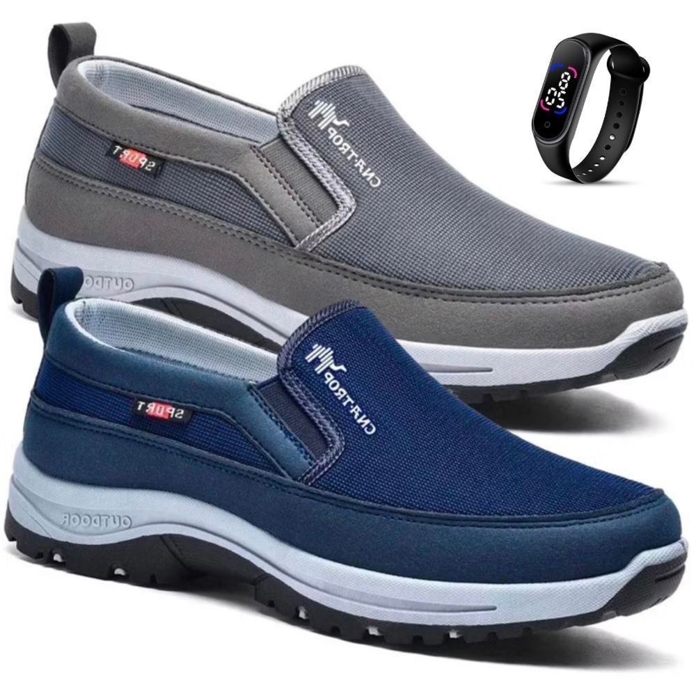 Kit 2 Pares De Tenis Sapatilha Masculino Moderno Aquatico Adventure Com Solado Costurado Resistente Macio + Relogio