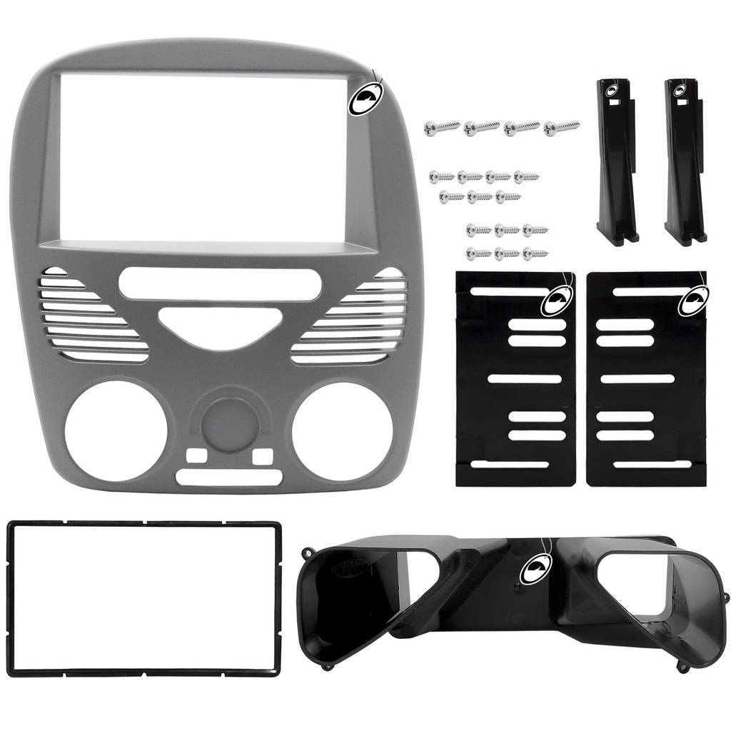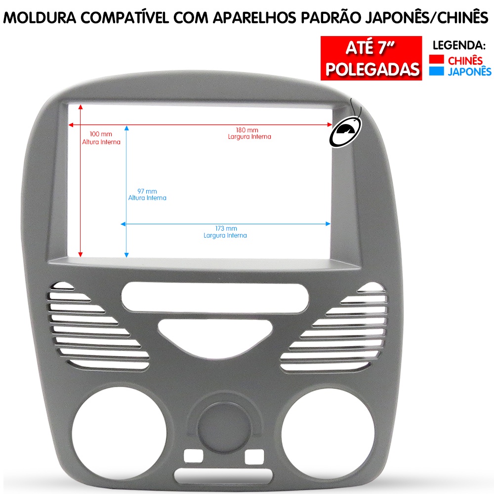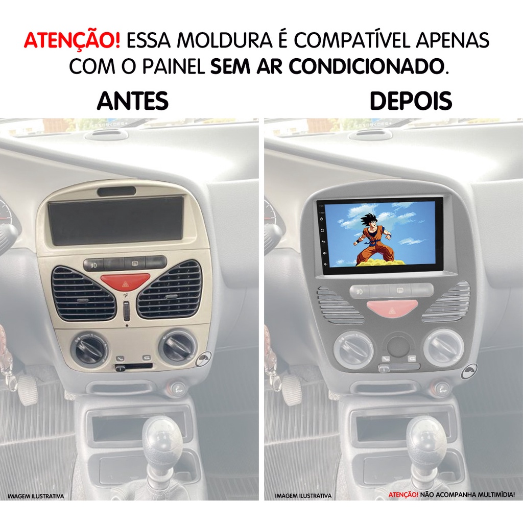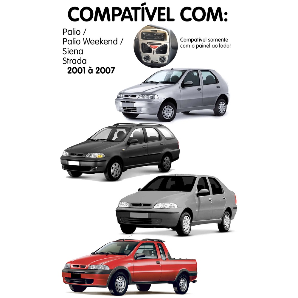 Moldura de Painel 2 Din 7" Polegadas Palio Siena Strada Weekend G2 2001 à 2007 Cinza Sem Ar Condicionado