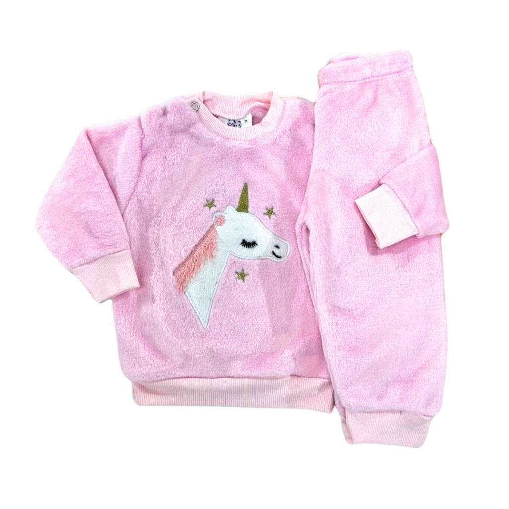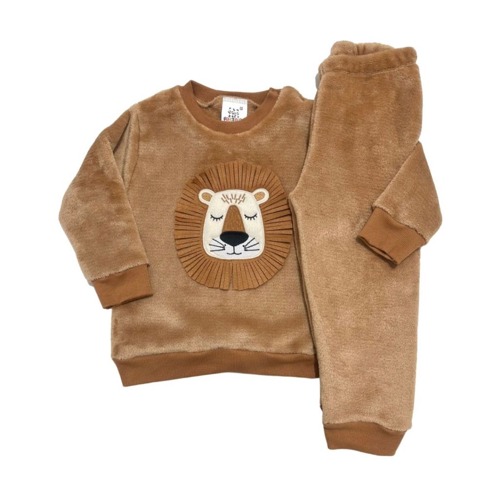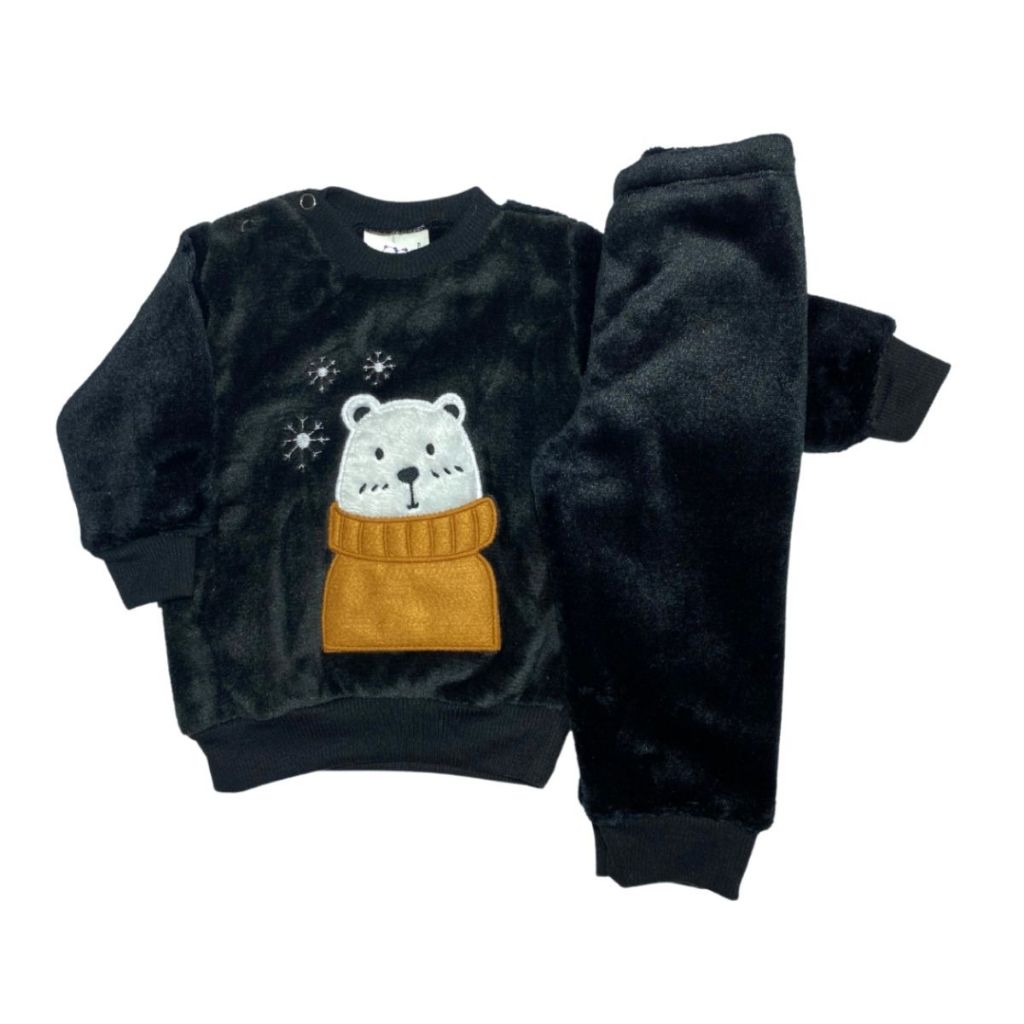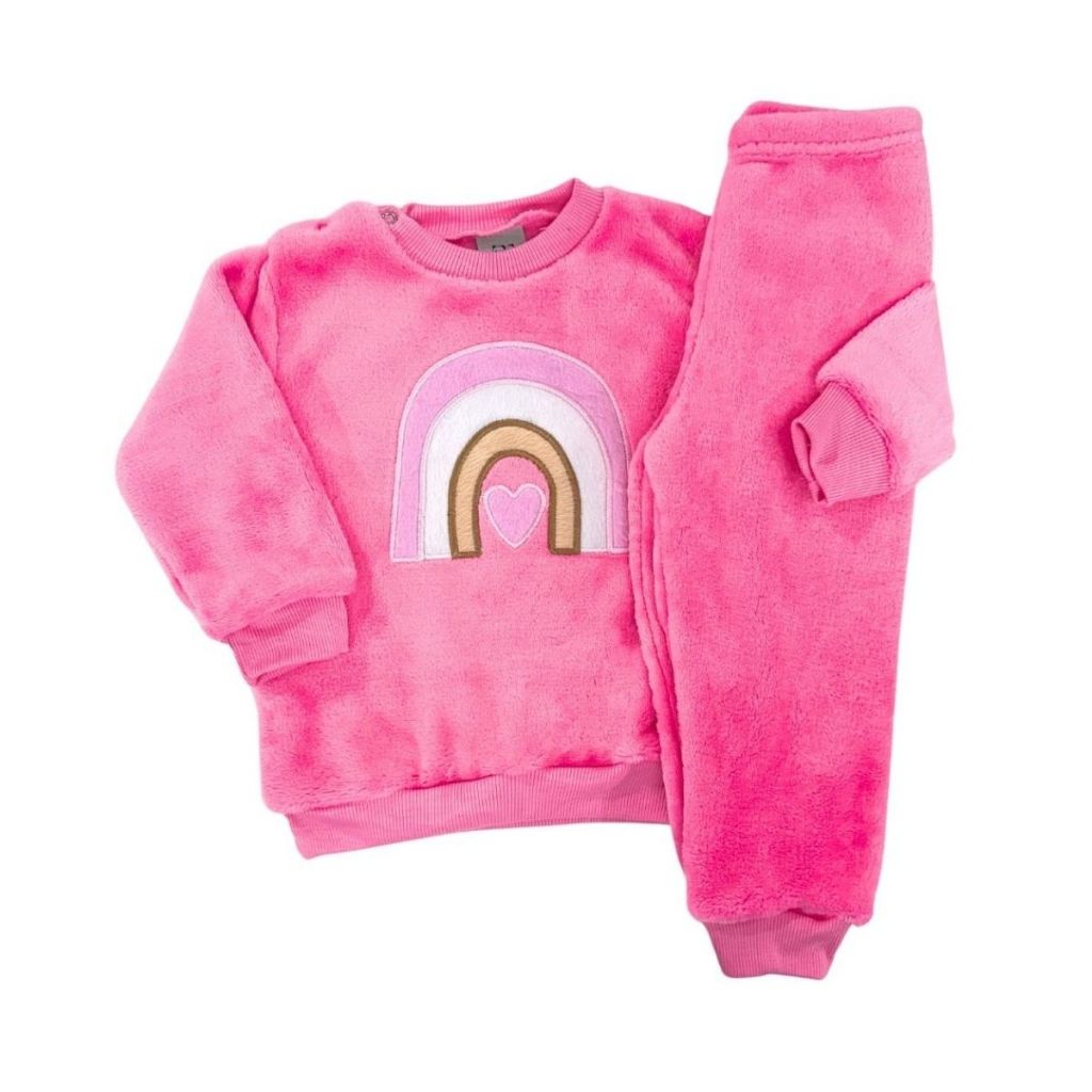 Conjunto Fleece com Bordado Bichinhos Peluciado Fleece Quentinho Inverno Infantil Bebê