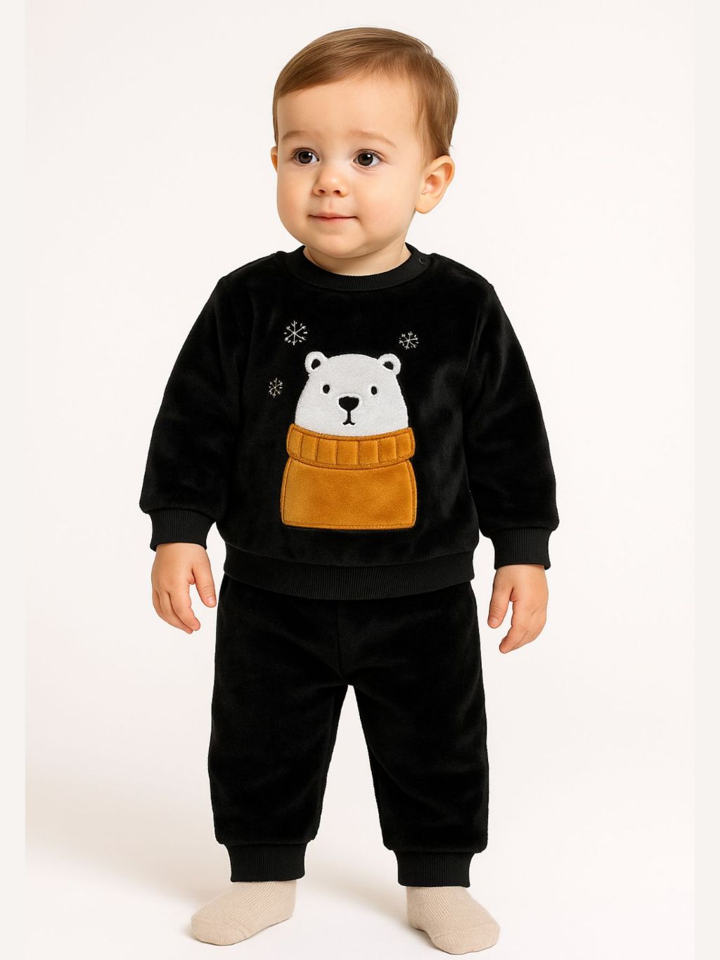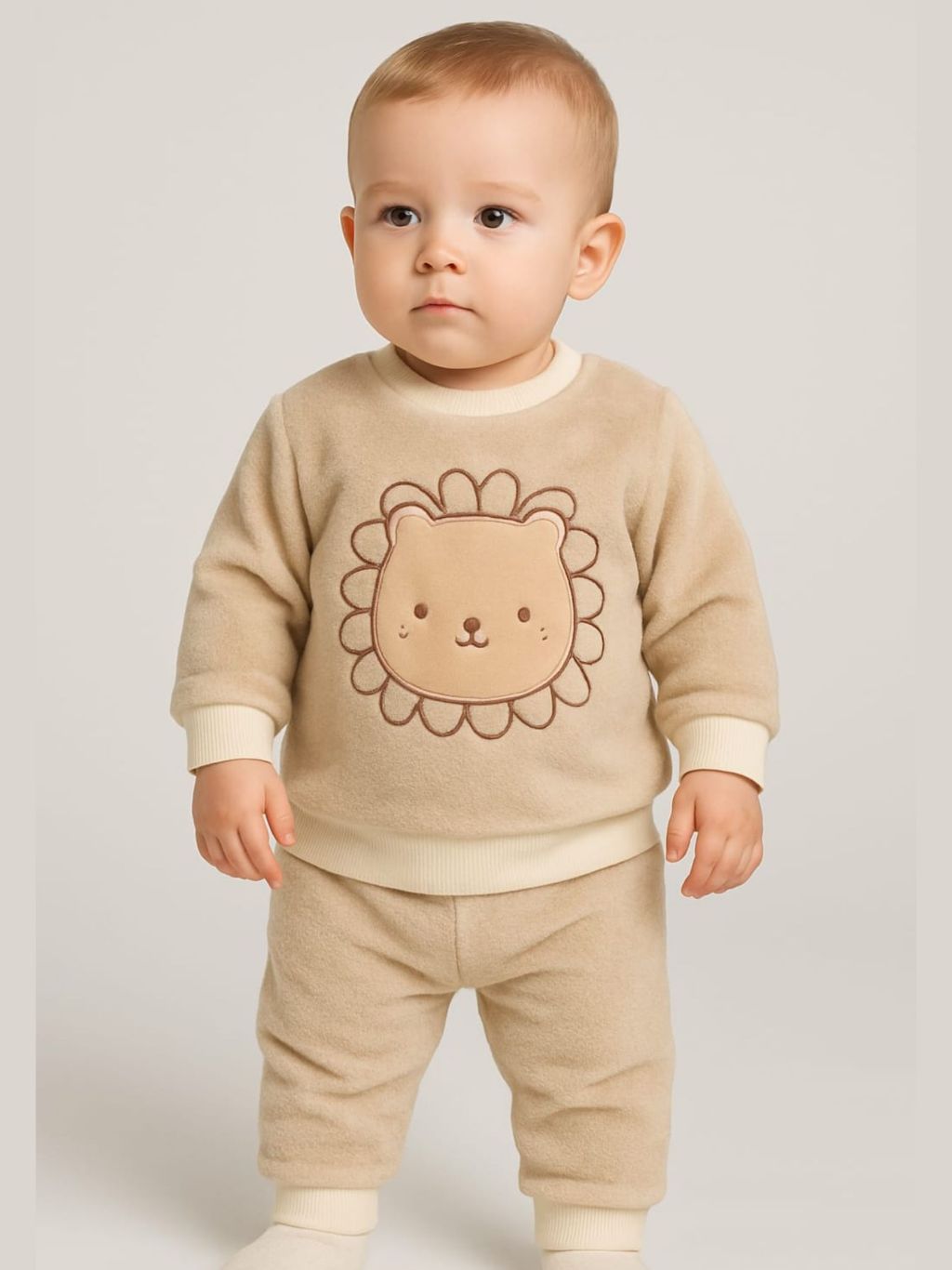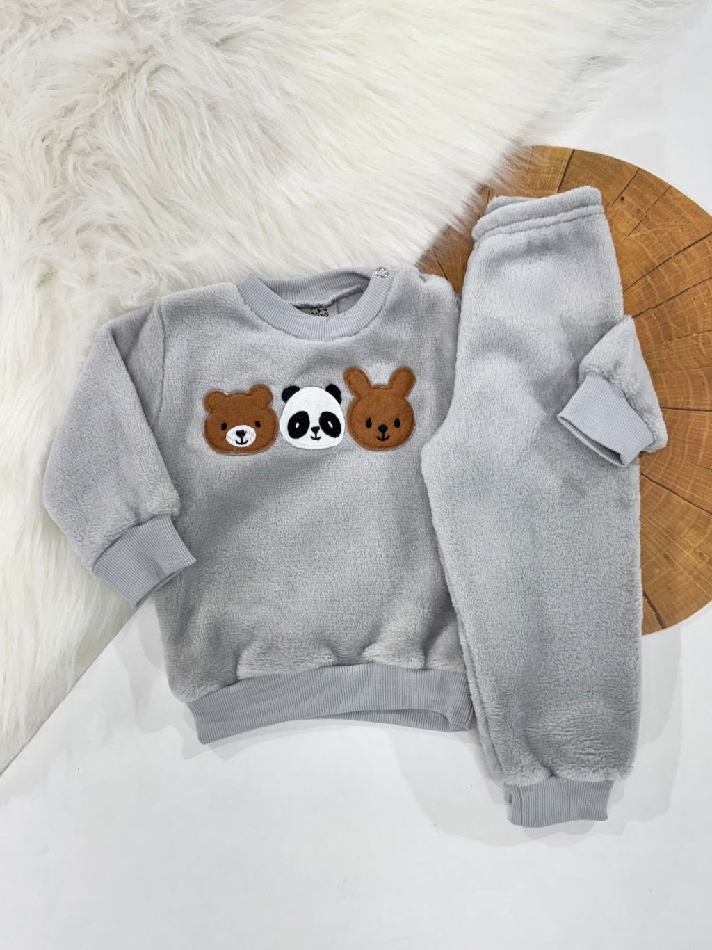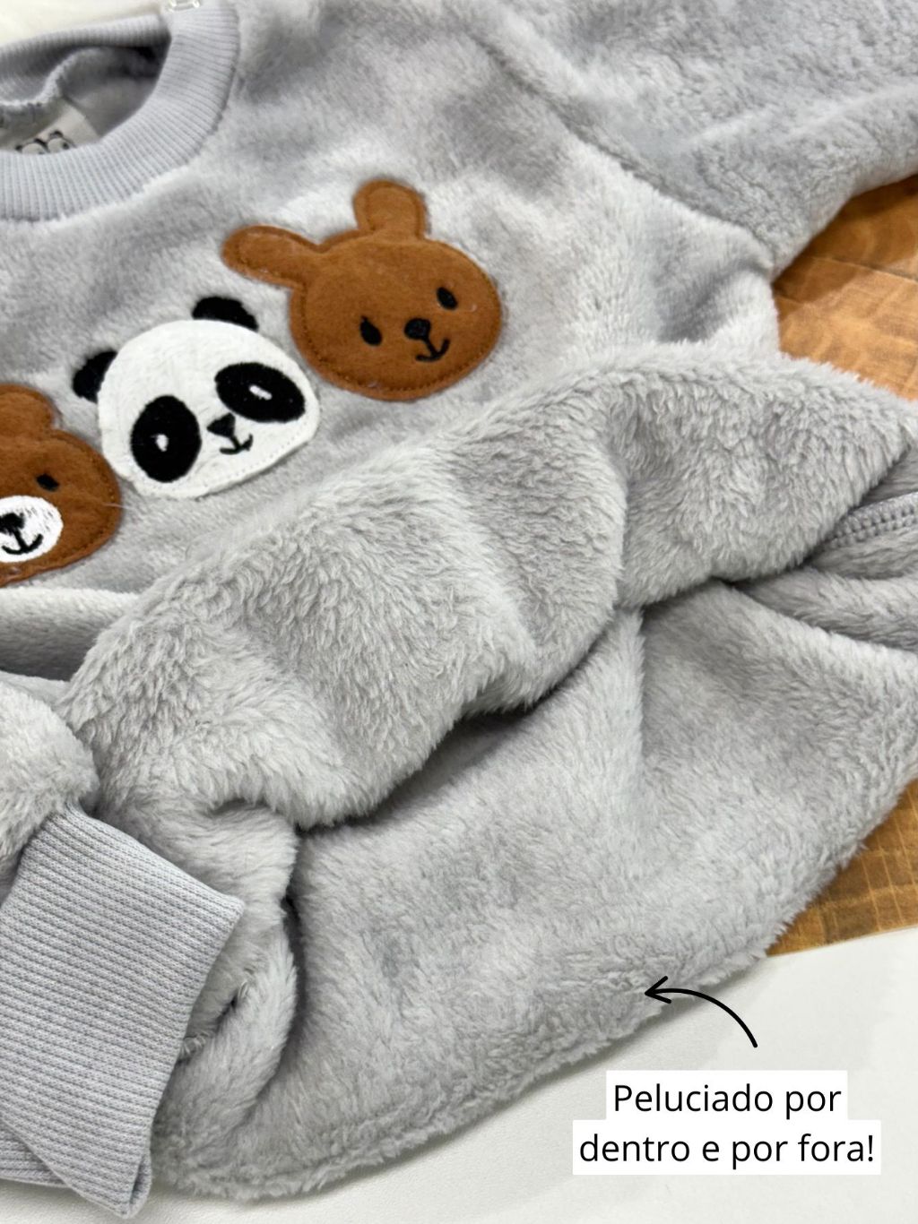 Conjunto Fleece com Bordado Bichinhos Peluciado Fleece Quentinho Inverno Infantil Bebê