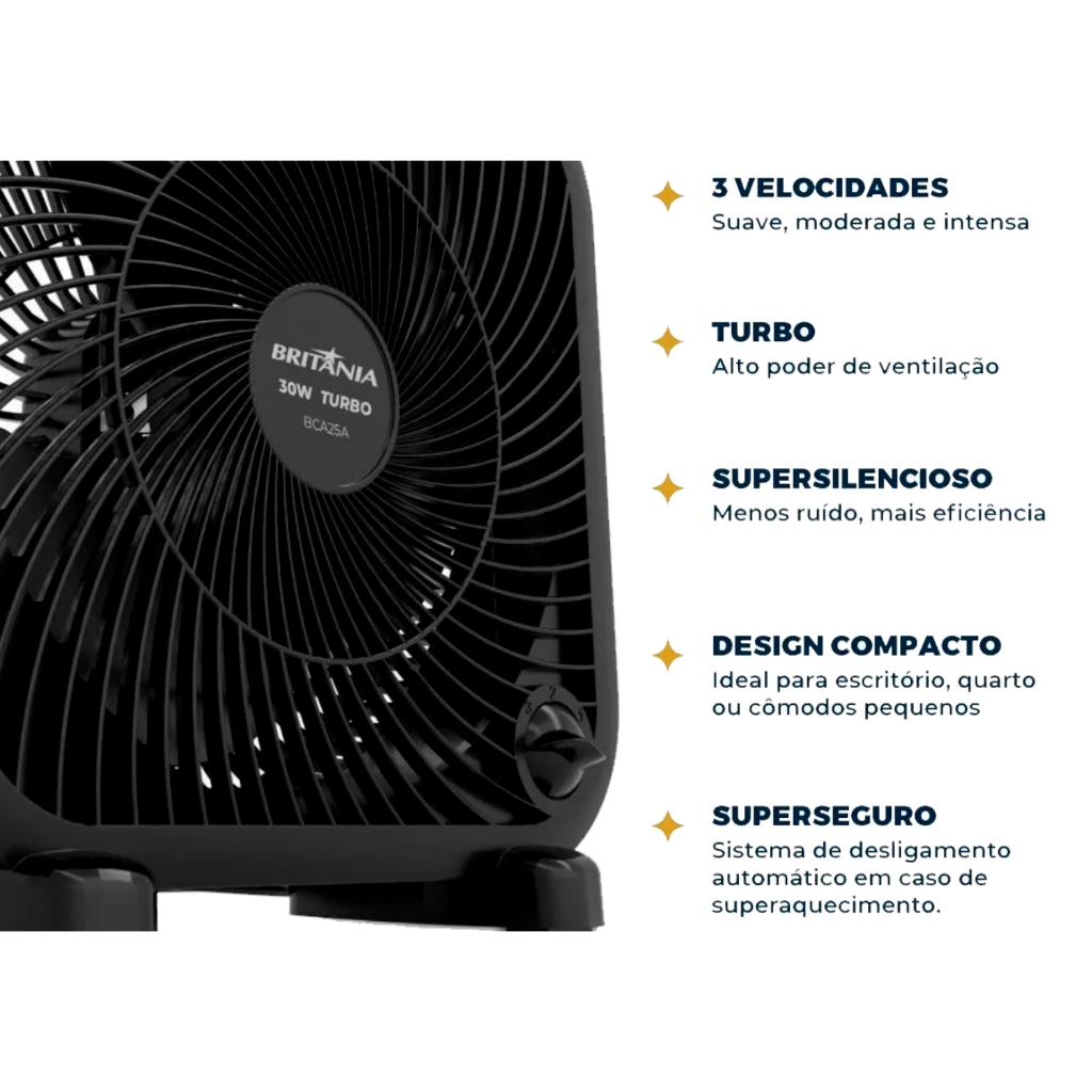 Mini Ventilador De Mesa Britânia 3 Velocidades 30w Turbo
