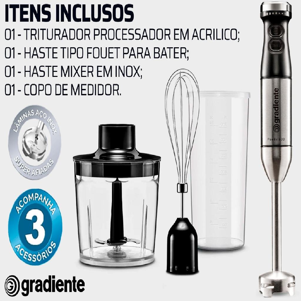 Mixer Powder 3 Em 1 Profissional 600w Triturador E Fuet Aço Inox Pgmx404 Gradiente