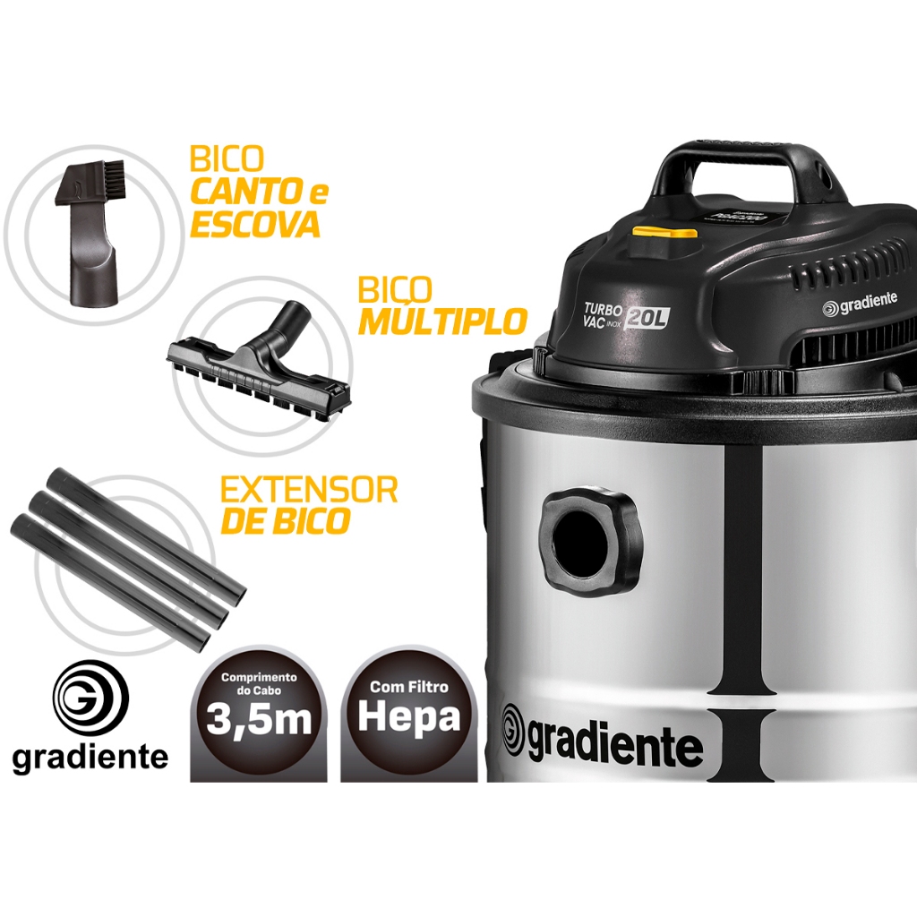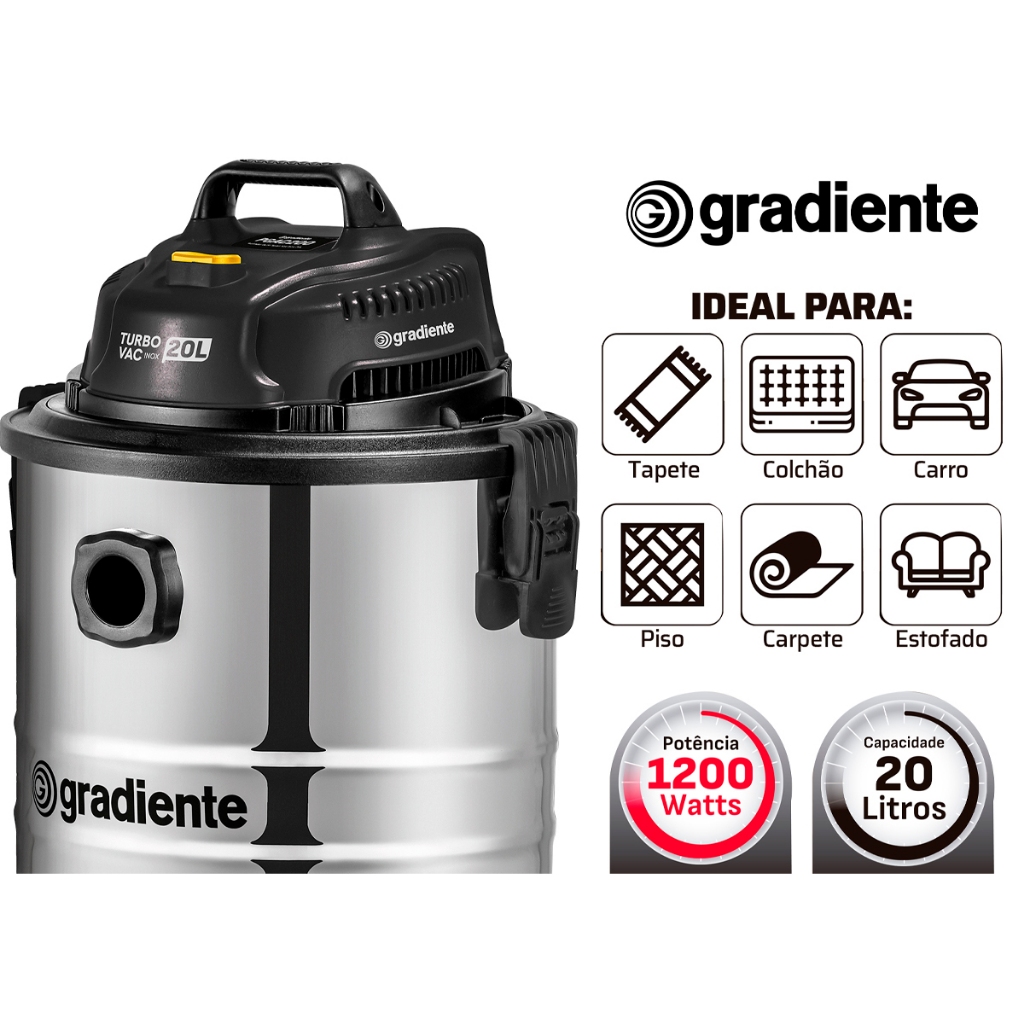Aspirador De Pó E Água Inox Multiuso Soprador Com Bico Extratora 20l 1200w Turbo Vac Gradiente