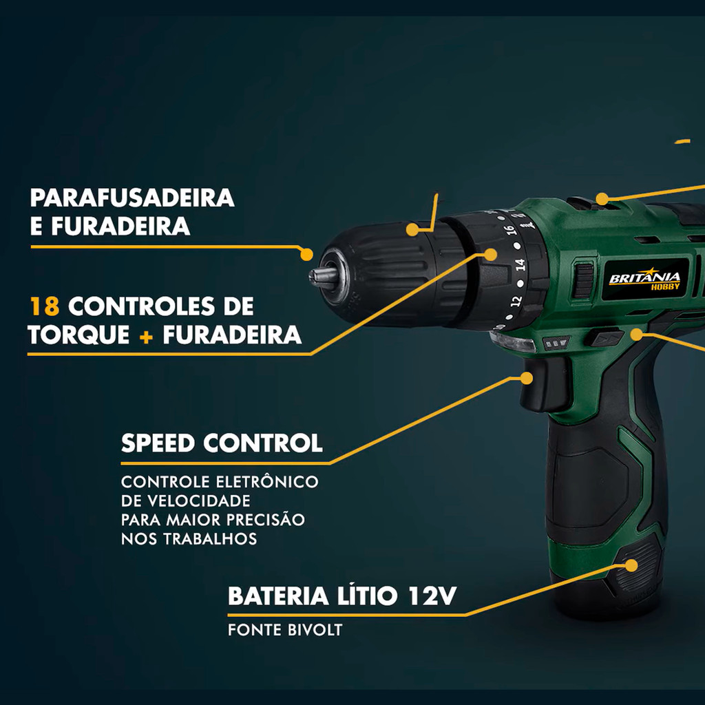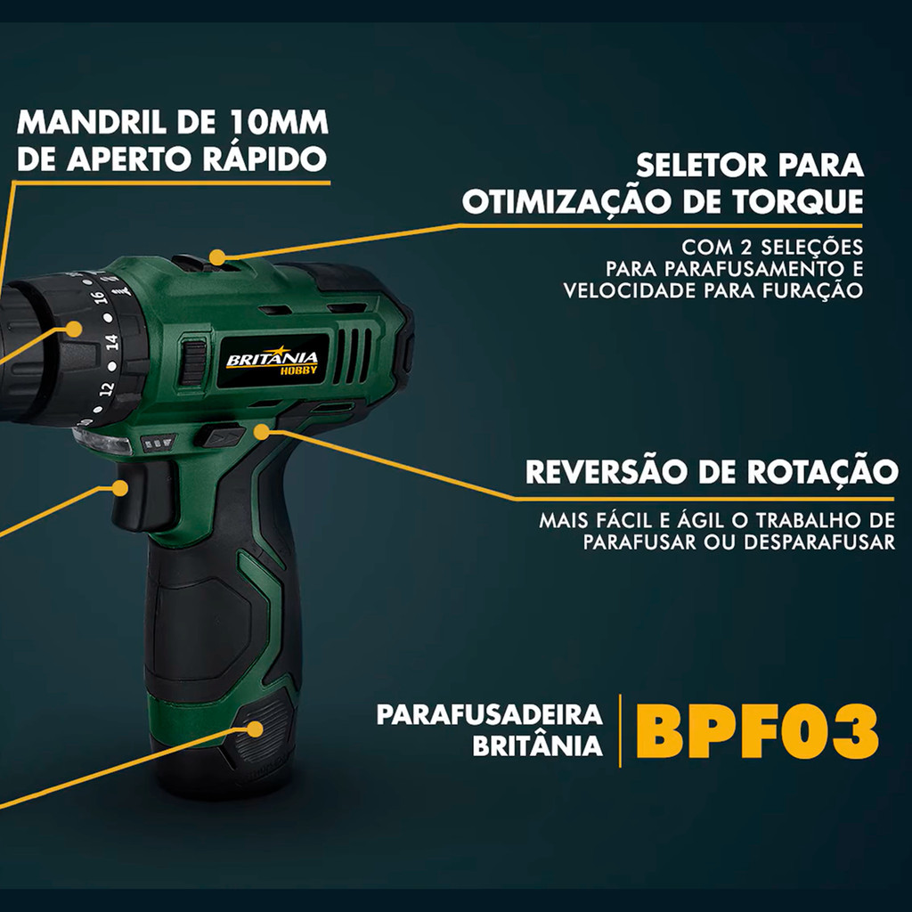 Parafusadeira Furadeira A Bateria 3/8 12v Bpf03 Britânia