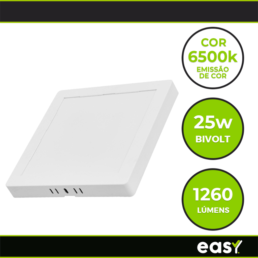 Painel Plafon 25w Quadrado Sobrepor Super Led Luz Forte Cor Branco 110v/220v