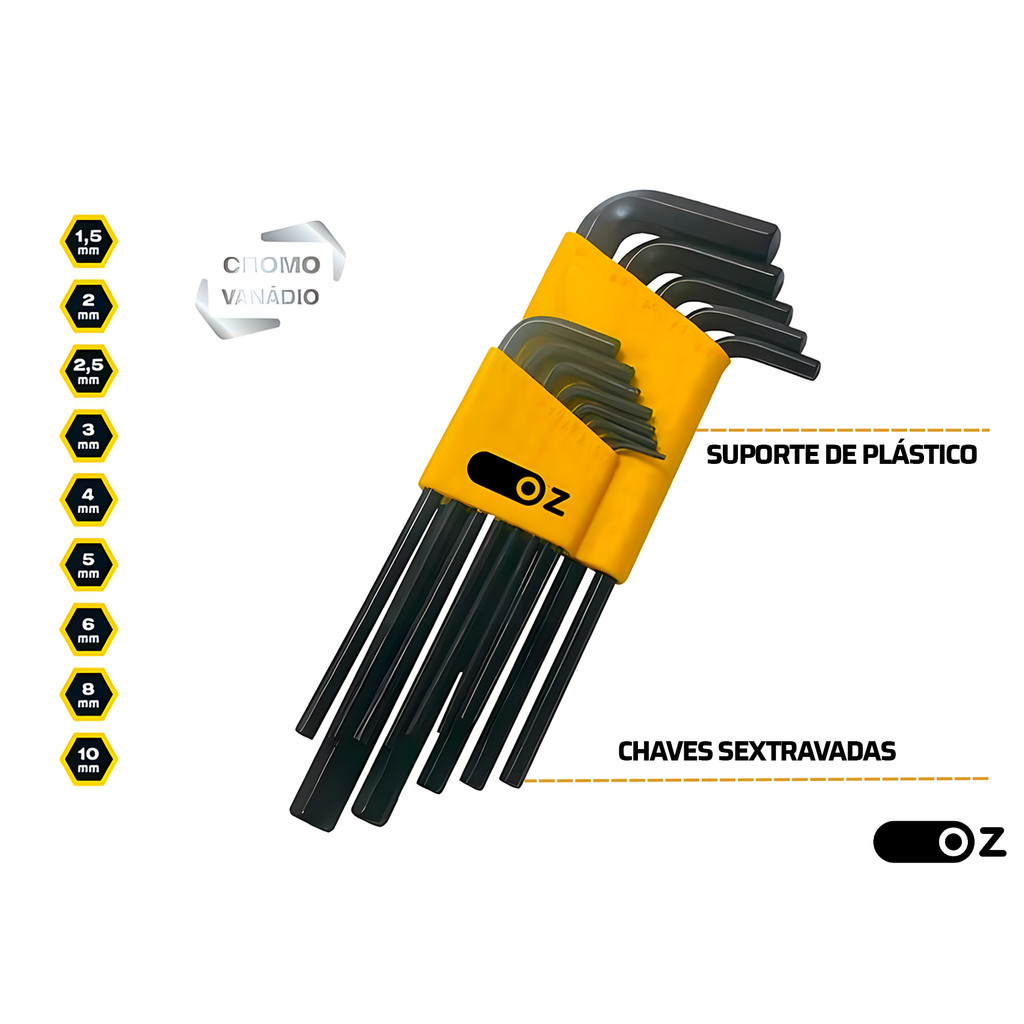 Jogo De Chave Allen Hexagonal 9 Peças 1,5 A 10mm Cromo Vanádio Oz