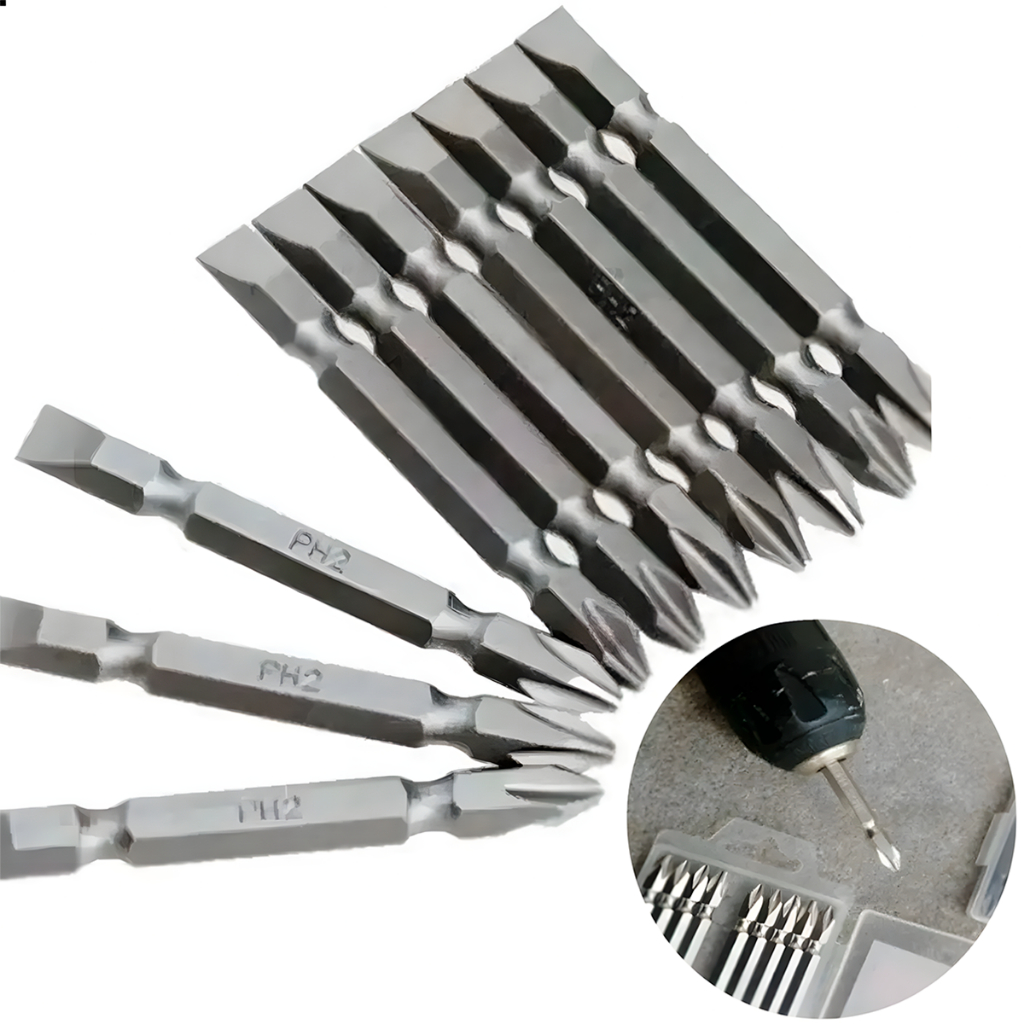 10 Pontas Bits Dupla Philips E Fenda Profissional Para Parafusadeira 65mm Ph2+1/4 Oz