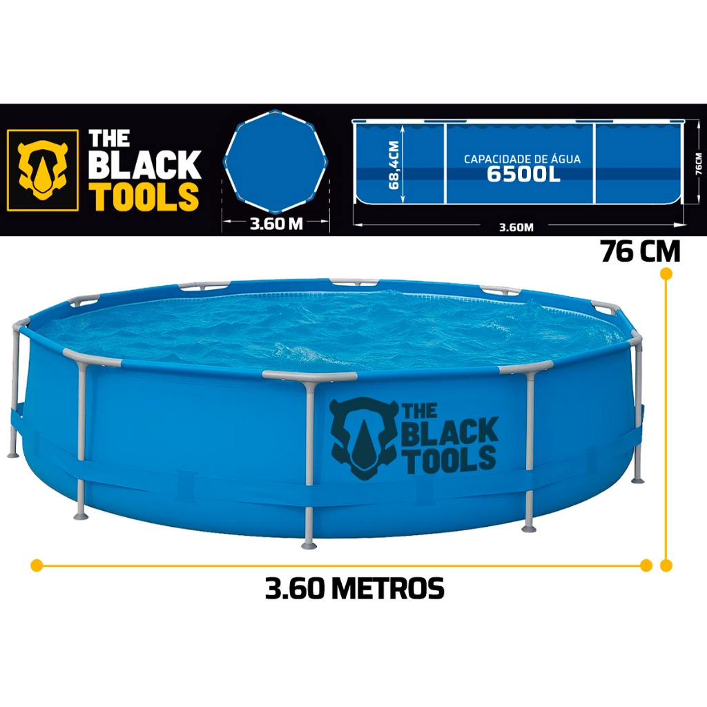 Piscina Estrutural Redonda Plástico 6500 Litros 3,60mx76cm Azul Lisa
