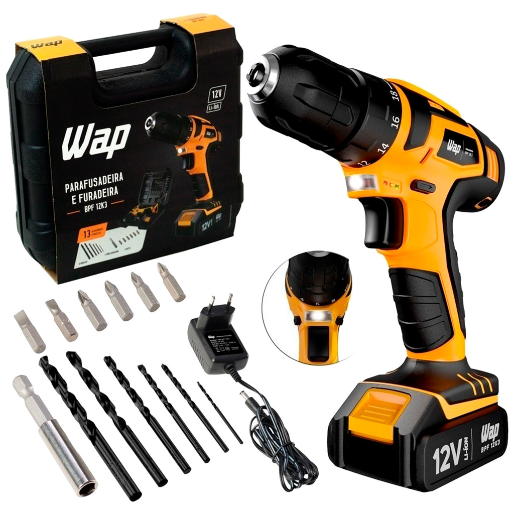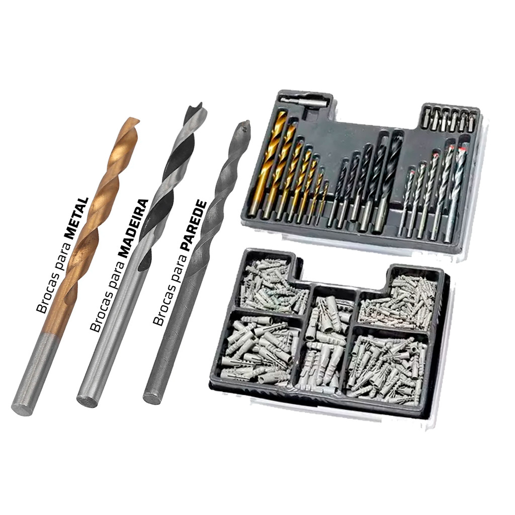 Kit Parafusadeira E Furadeira 12v BPF 12K3 Maleta + Kit 300 Peças